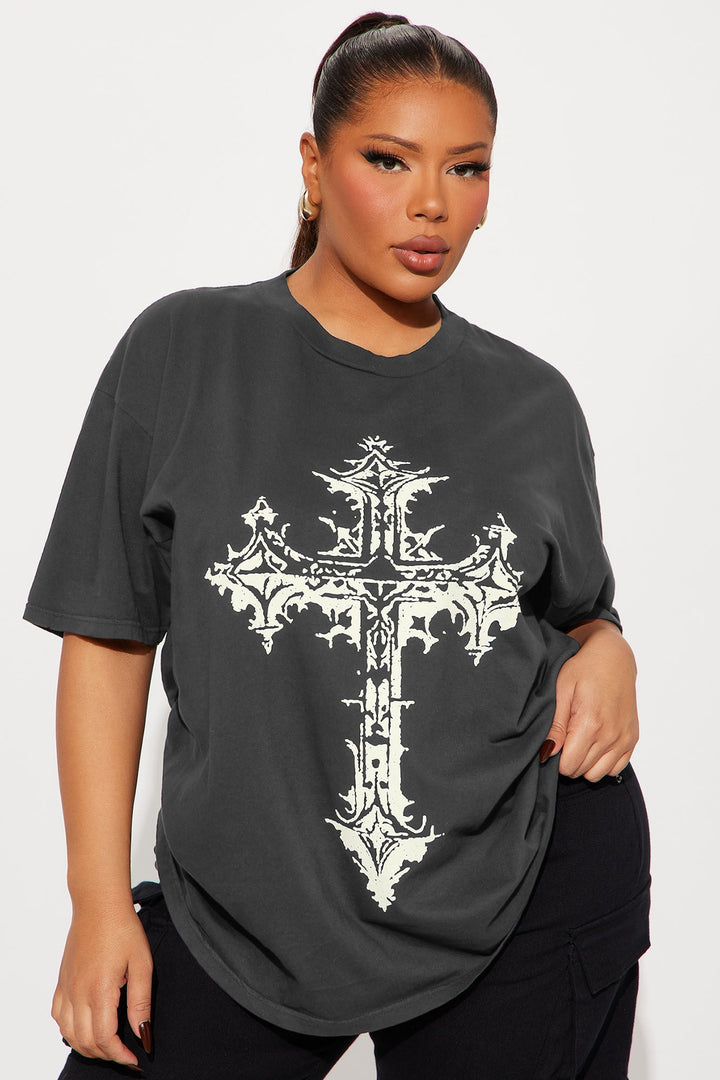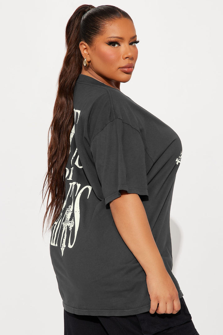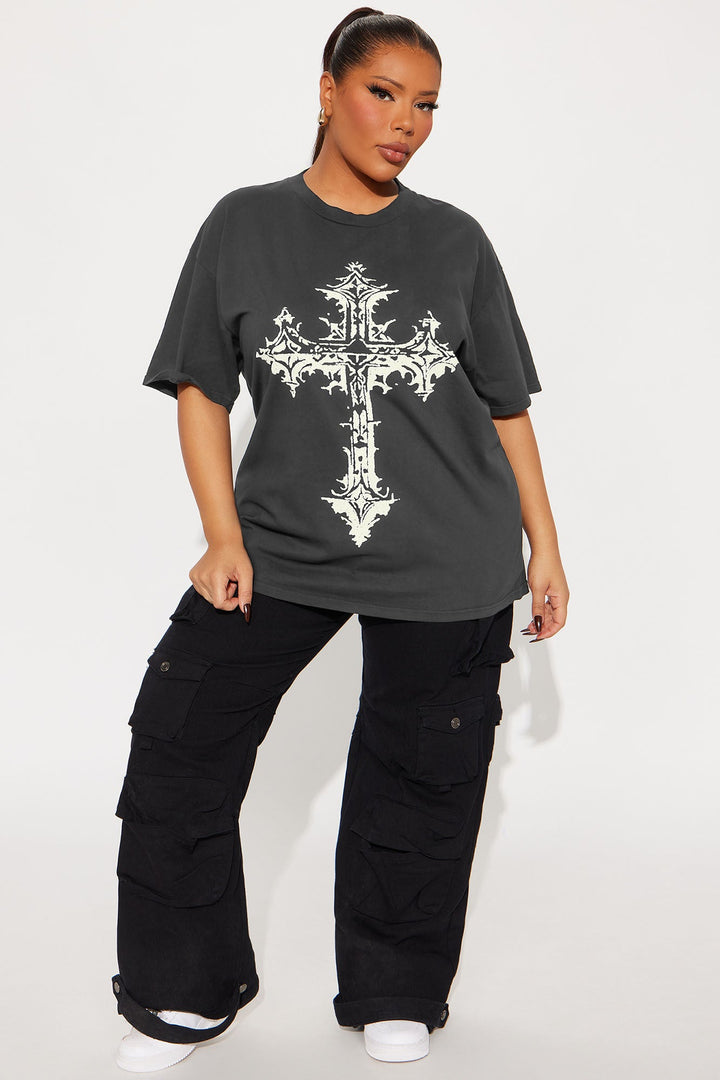 Available In Charcoal And Cream. | Tshirt | Crew Neck | Short Sleeve | Front And Back Screen | Stretch | Disclaimer: Due To The Printing Process A Difference In Saturation May Occur, each Garment Is Unique. | 100% Cotton | Imported