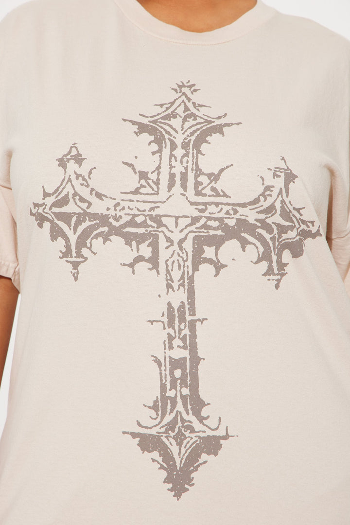 Available In Charcoal And Cream. | Tshirt | Crew Neck | Short Sleeve | Front And Back Screen | Stretch | Disclaimer: Due To The Printing Process A Difference In Saturation May Occur, each Garment Is Unique. | 100% Cotton | Imported