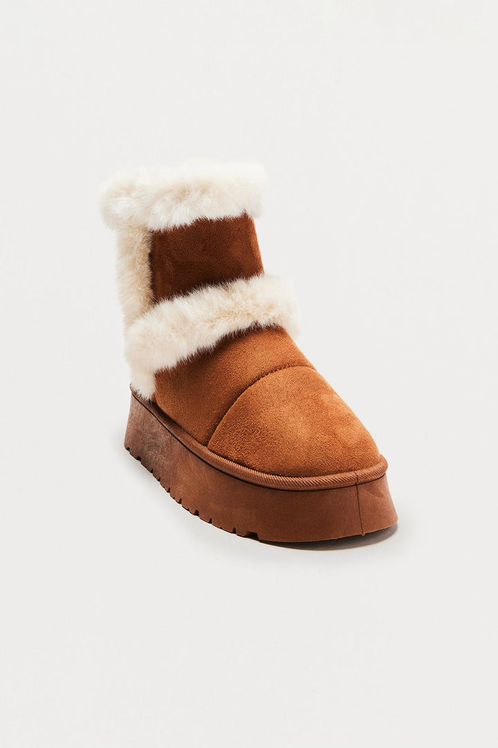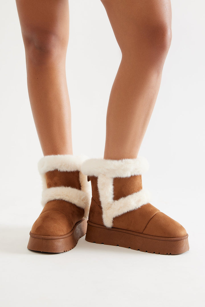 Icebox Fur Trim Booties - Chestnut