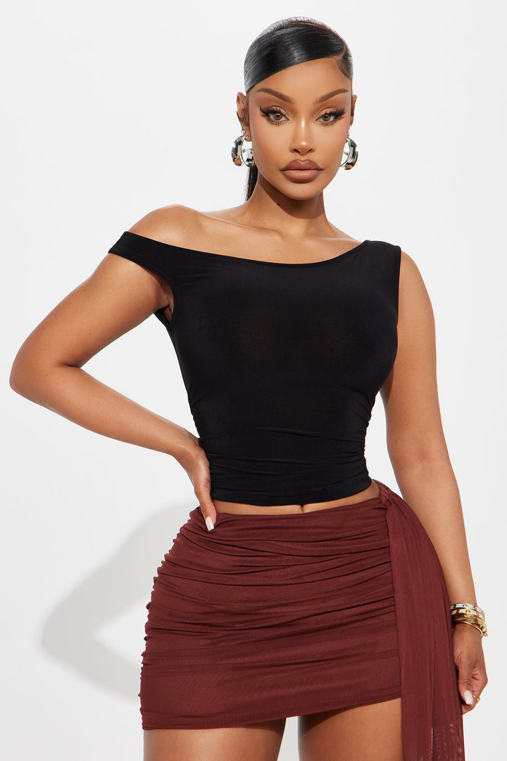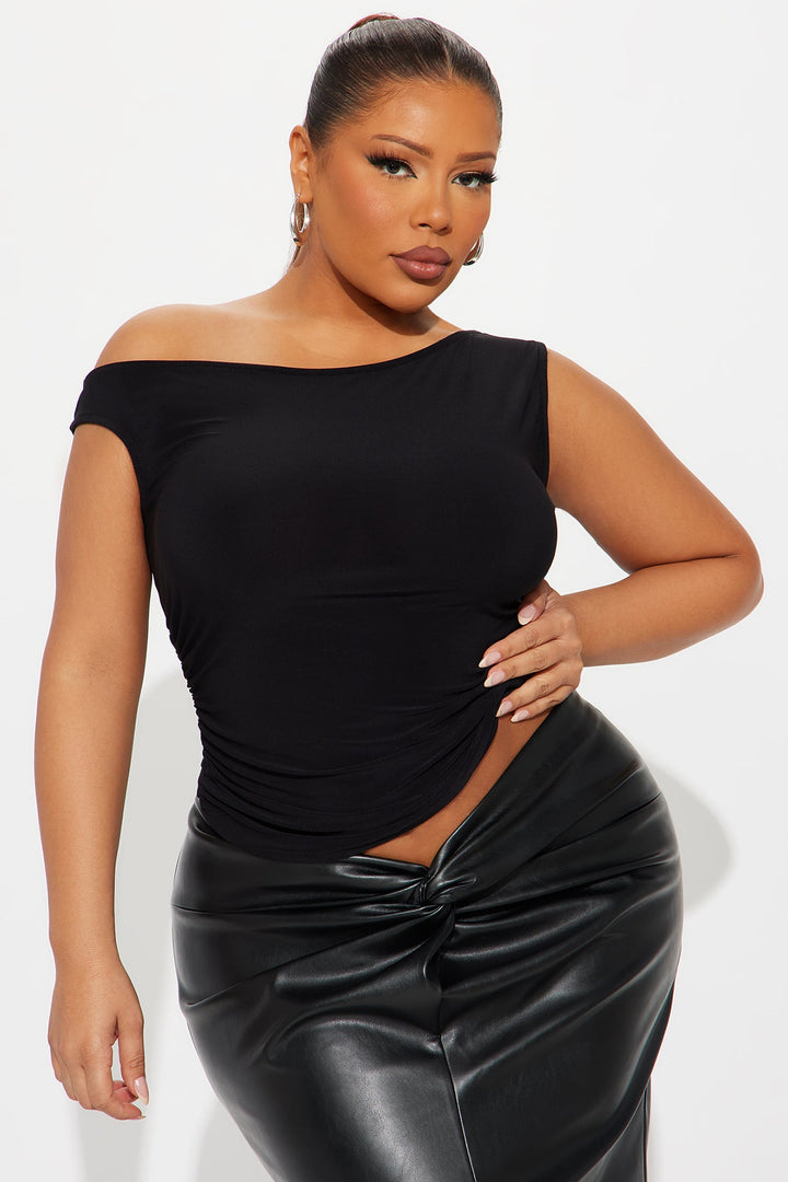 Ingrid Ruched Open Back Off Shoulder Top - Black