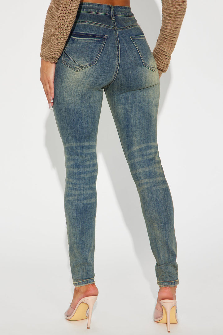 Available In Medium Wash. | Skinny Jean | 5 Pocket | Sculpting Darts | 10.5" High Rise | 29" Inseam | High Stretch | Disclaimer: Due To The Specialized Wash Process, Each Garment Is Unique. | 70% Cotton 28% Polyester 2% Spandex | Imported