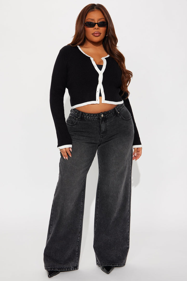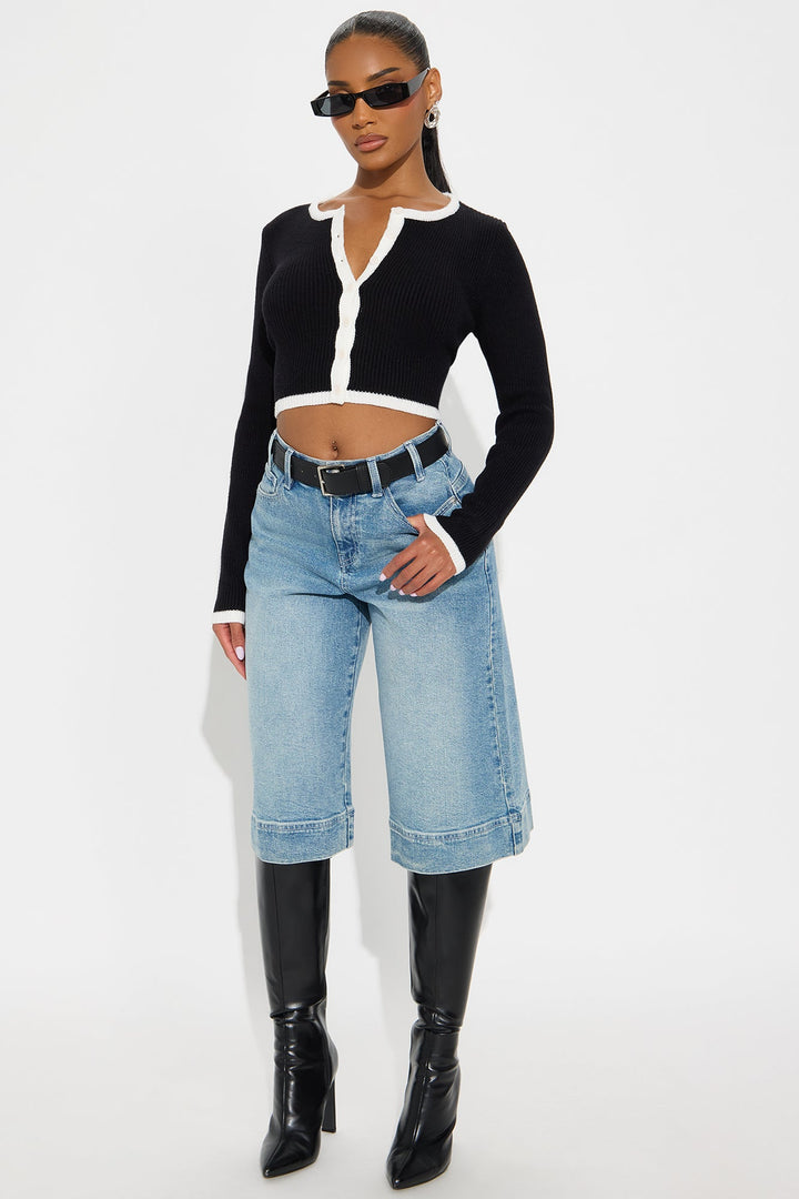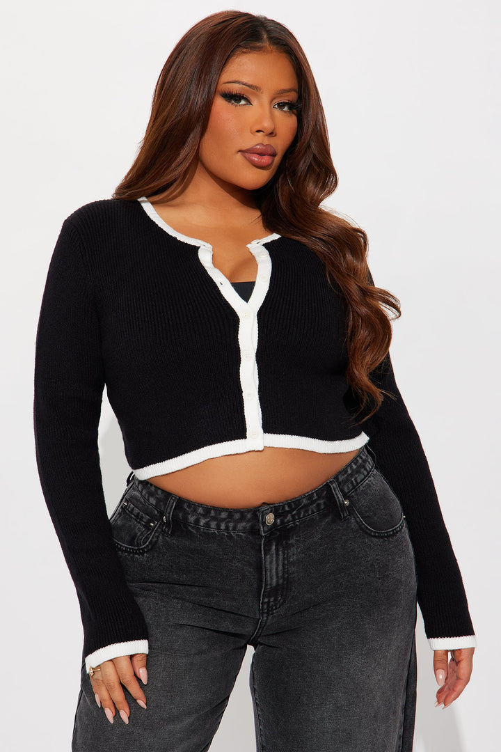 Jaszy Contrast Cardigan - Black/White