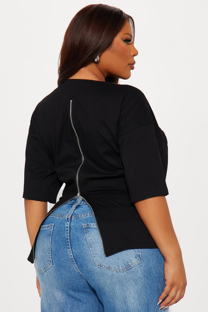 Available In Black, Stone And White. | Fitted T-Shirt | Crew Neck | Short Sleeve | Back Zipper Detail | Stretch | Self:100%Cotton | Imported