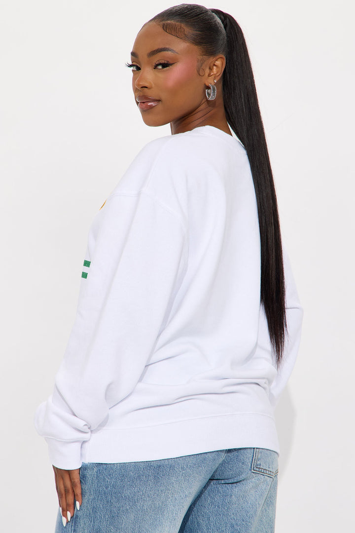 Available In White. | Crew Sweatshirt | Fleece | Long Sleeve | Disclaimer: Due To The Printing Process A Difference In Saturation May Occur. Each Garment Is Unique. | Self: 58% Cotton 42% Polyester | Imported
