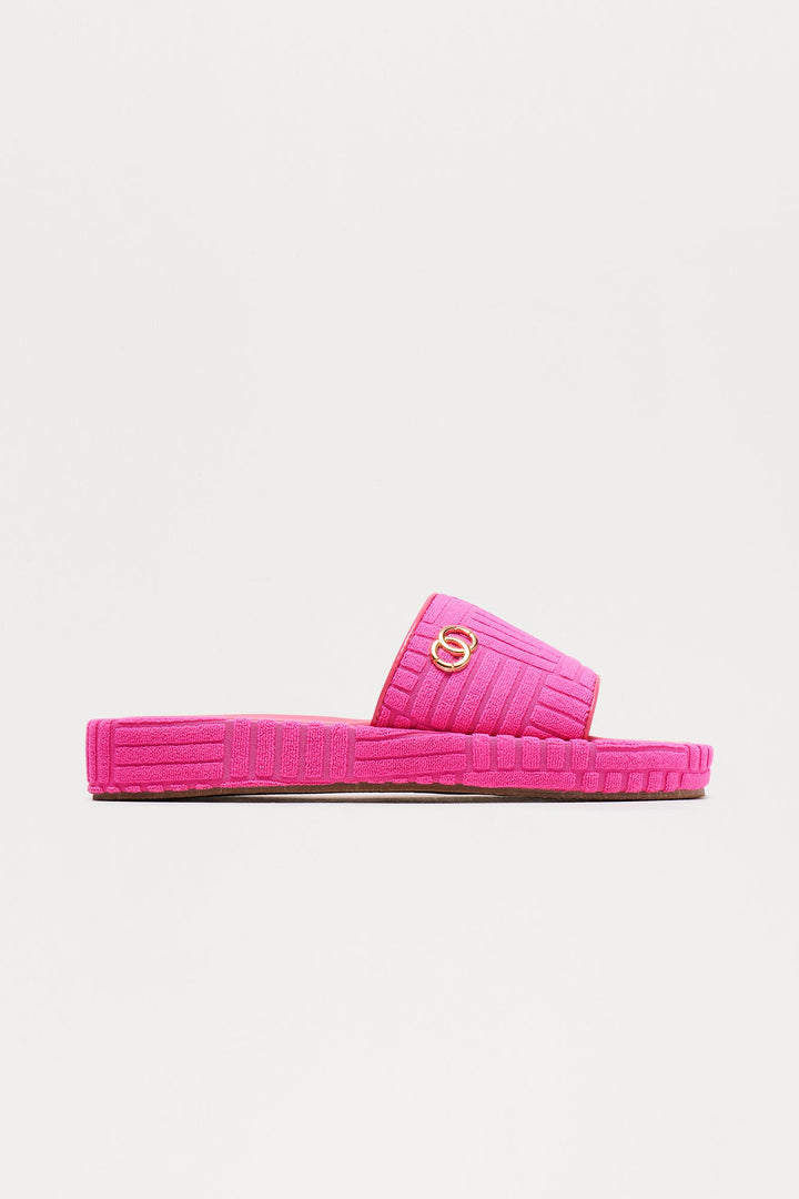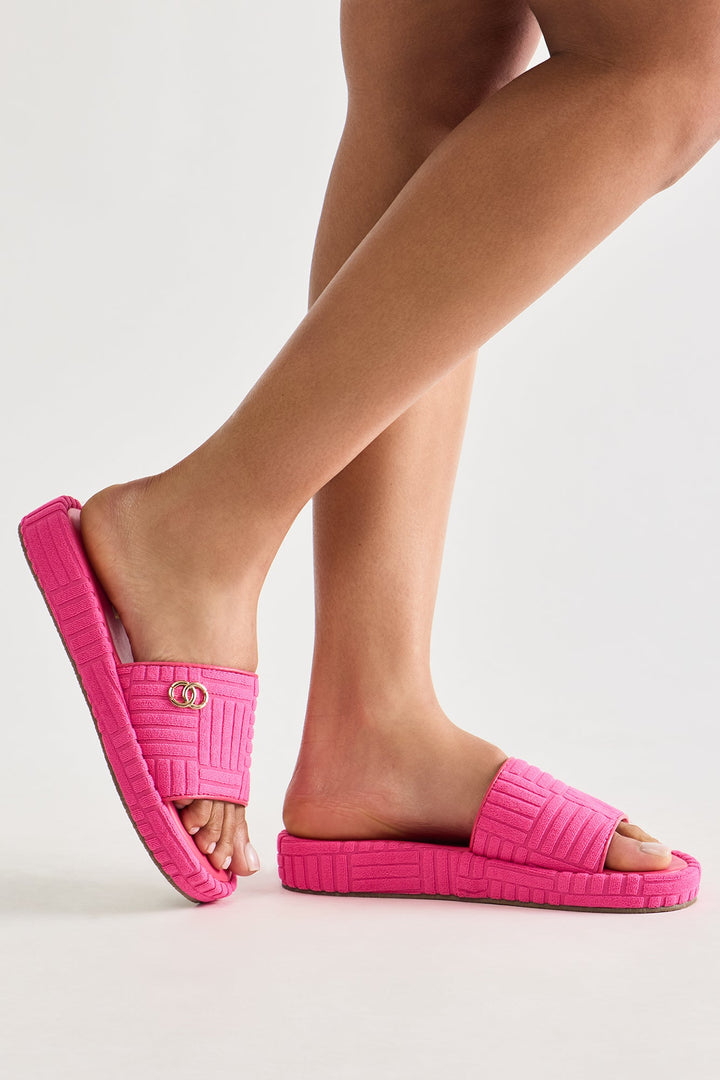 Available In Pink. | Flat Sandals | Terry Cloth | Round Toe | Flat Heel | Imported