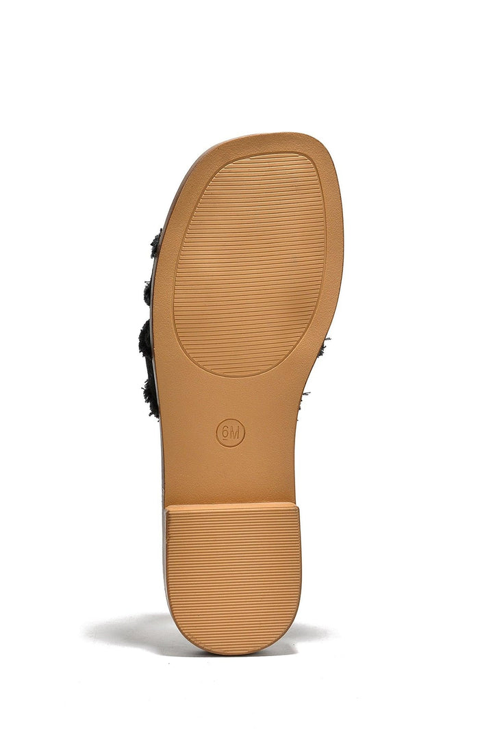 JENJEN - BLACK - SANDALS by CAPE ROBBIN Open Toe Frayed Denim Upper PU Leather Insole with Memory Foam The trendy Jenjen sandals feature a frayed denim upper,adding a touch of edge to your summer wardrobe. Perfect for those who want to make a statement,these sandals combine style and comfort effortlessly.