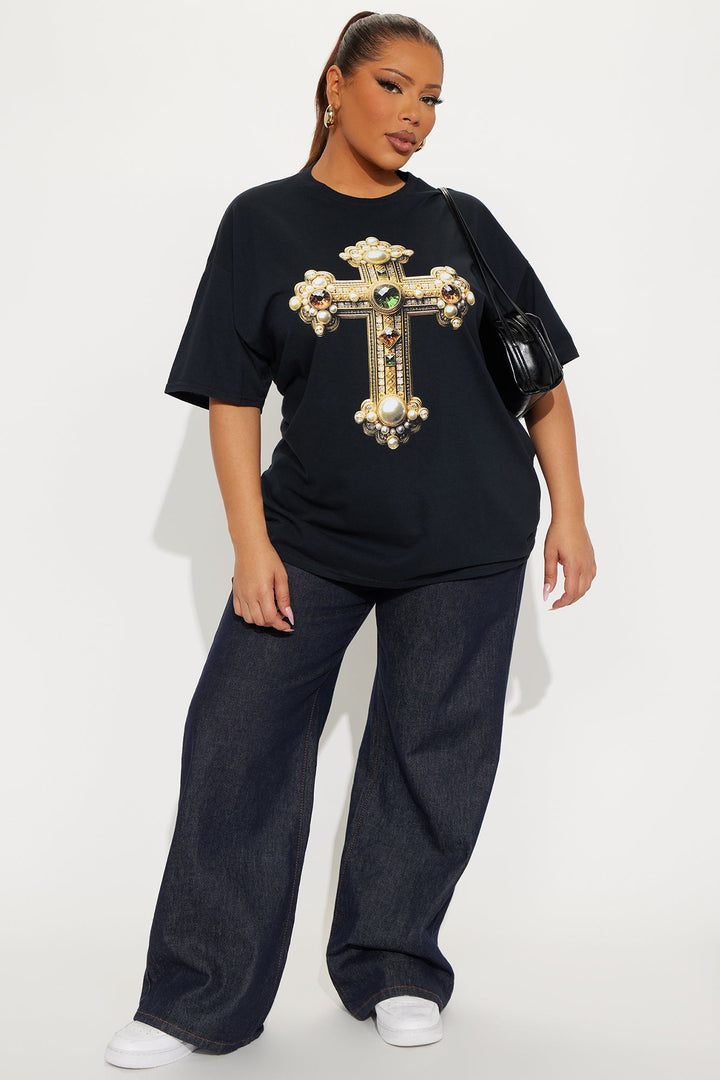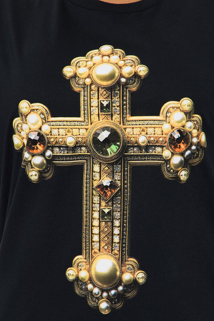 Jeweled Cross Oversized Tee - Black