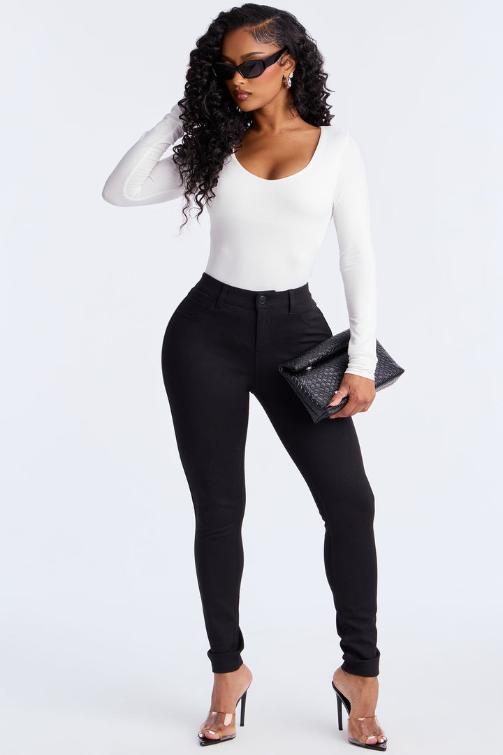 Josie Double Lined V Neck Long Sleeve Bodysuit - Off White