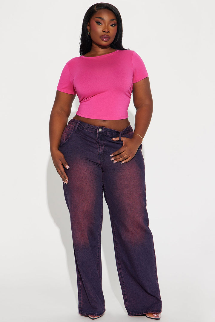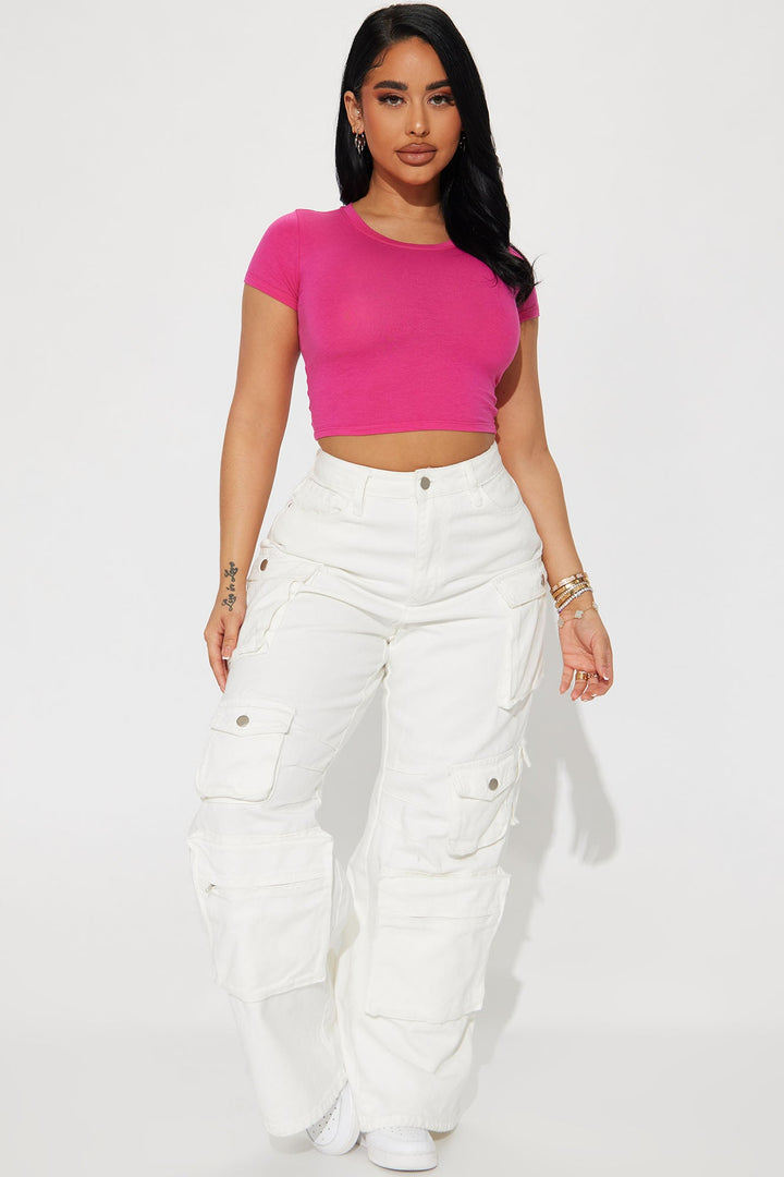Available In Black, Fuchsia, Heather Grey And White. | Short Sleeve | Cropped | 60% Cotton 35% Rayon 5% Spandex | Imported