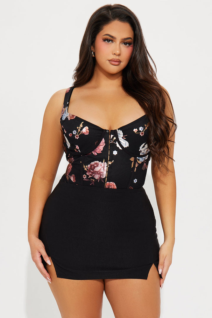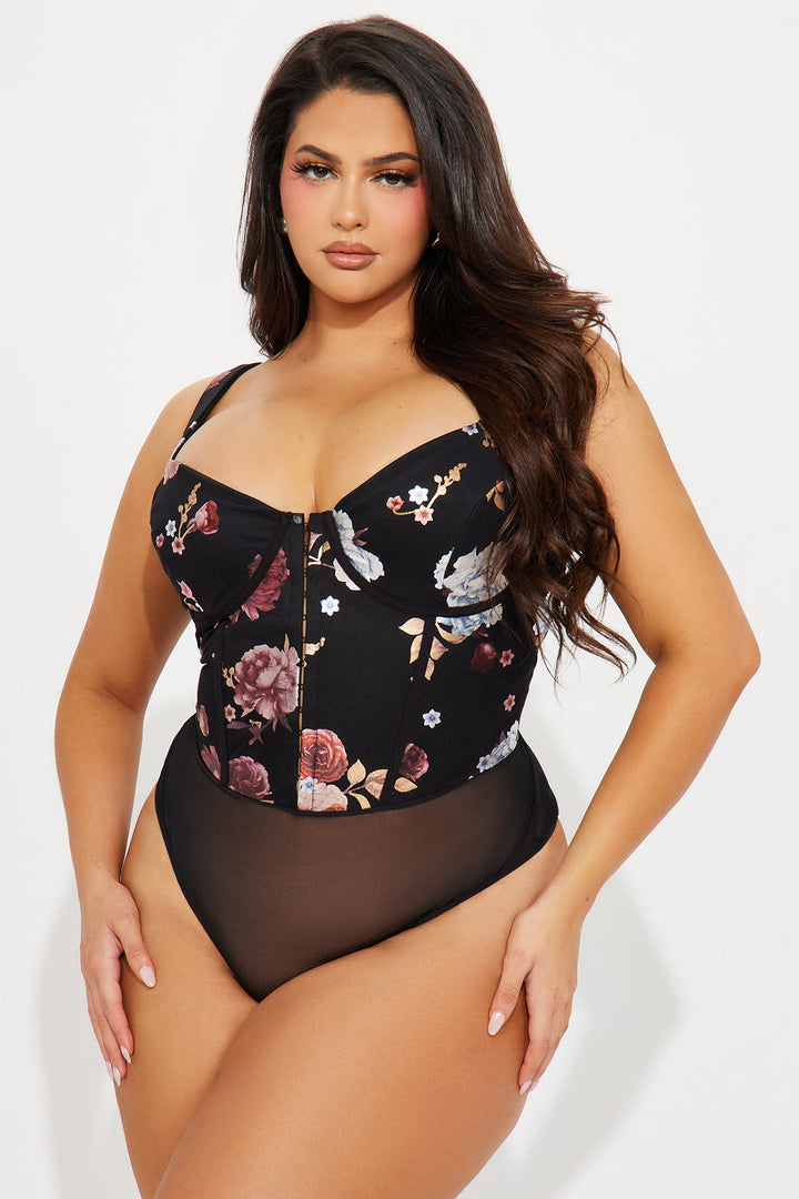Sweetheart Neckline | Adjustable Straps | Padded Bra Cups | Boning | Hook And Eye | Floral Print | Cheeky Bottom | Snap Button Closure | Stretch | Mesh | Final Sale | Disclaimer: Print Placement Will Vary | Shell/Mesh: 95% Polyester 5% Spandex | Lining: 100% Polyester | Imported