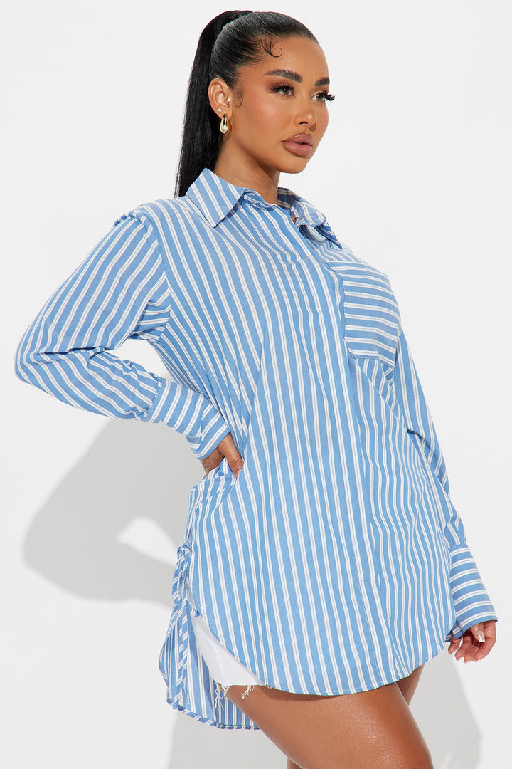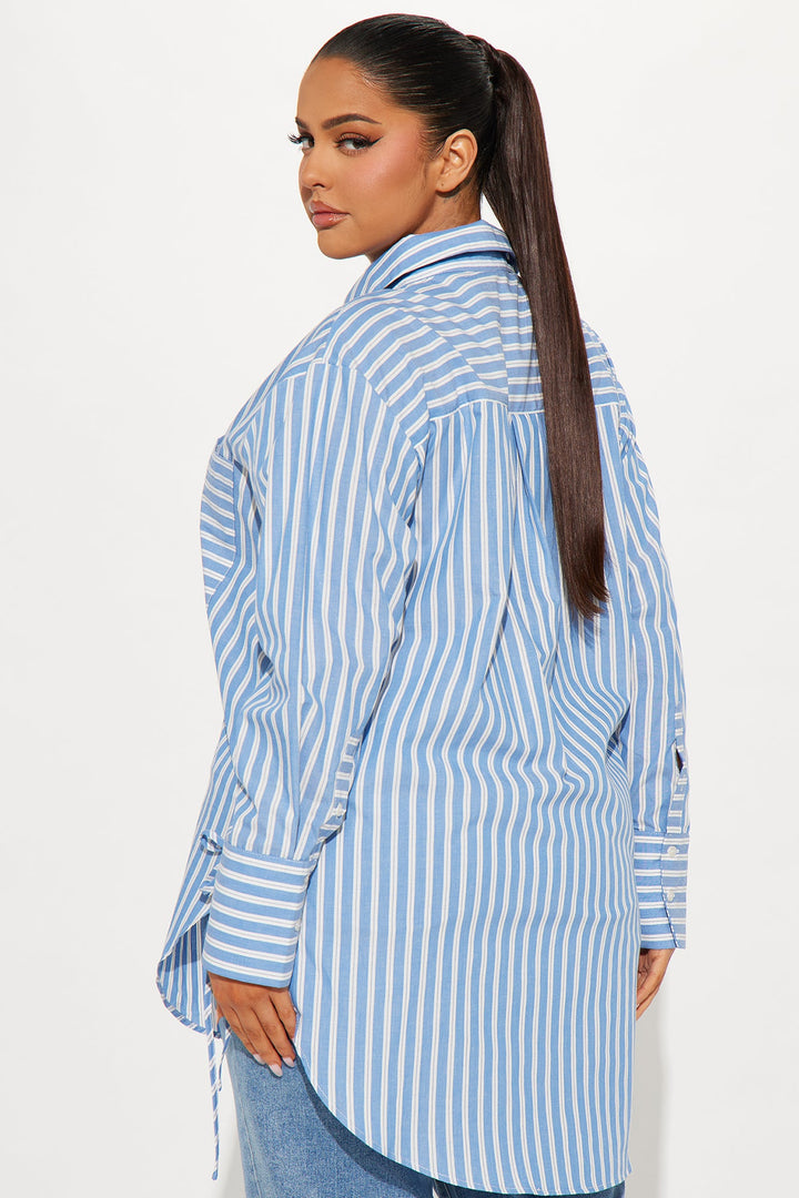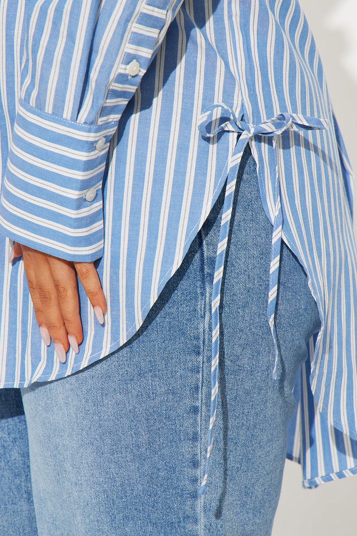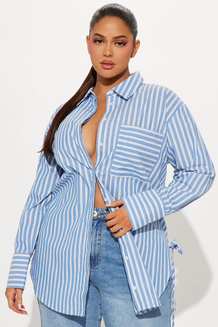 Available In Blue/combo. | Striped Shirt | Long Sleeve | Button Down | Collar | Front Pocket | Tie Side Detail | Round Hem | Oversized | Non Stretch | 65% Polyester 35% Cotton | Imported