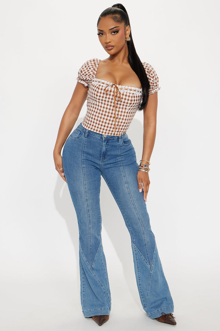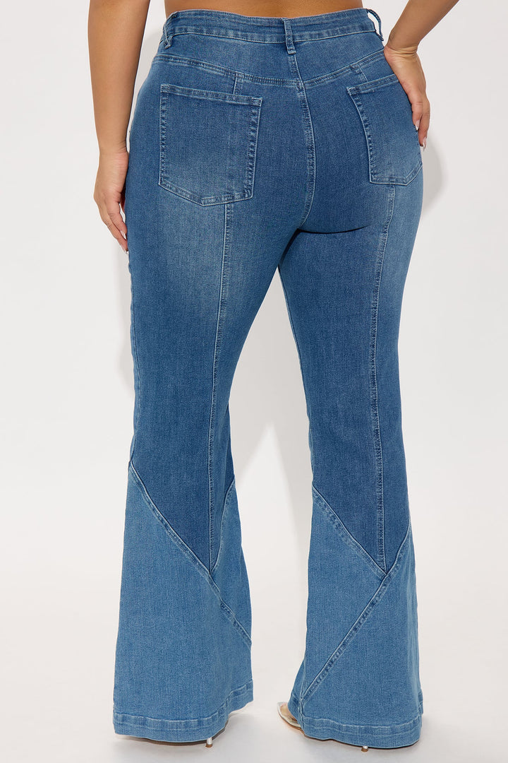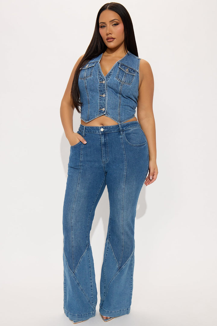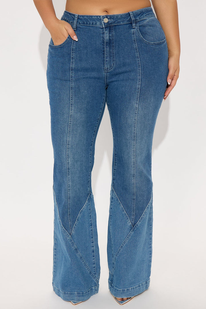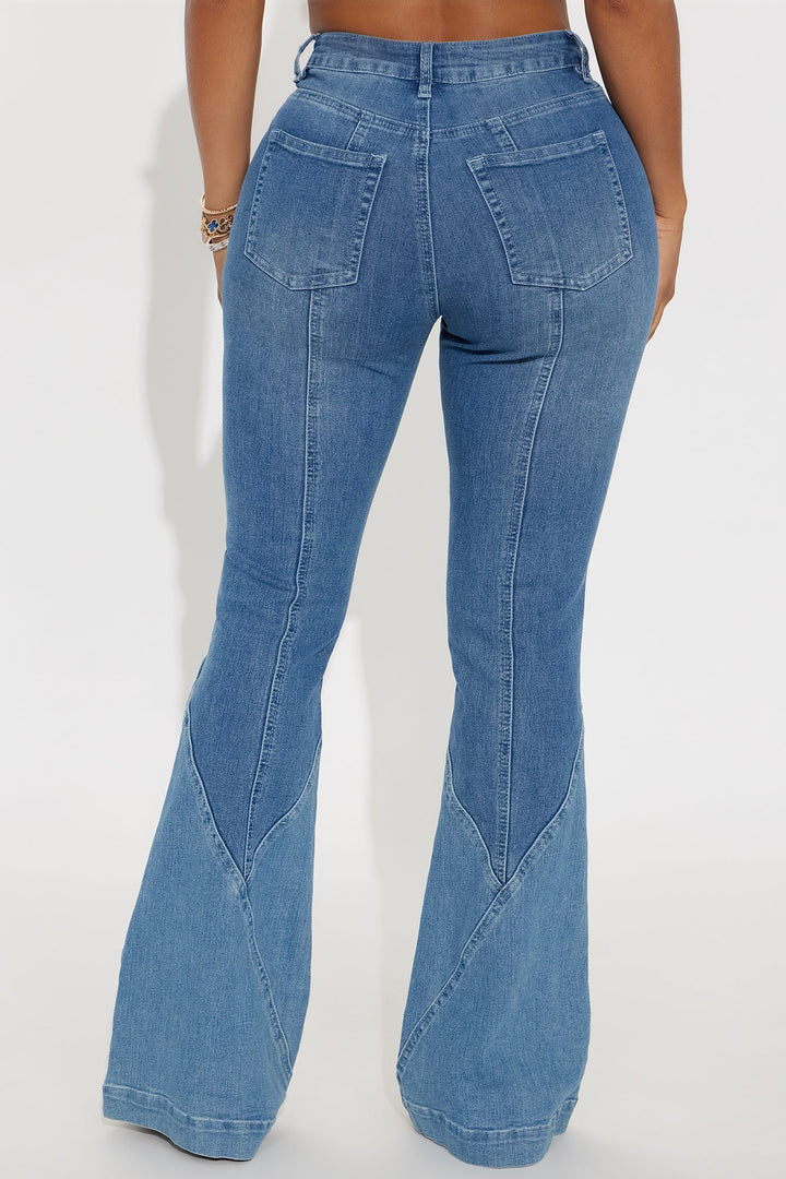 Available In Medium Wash. | Flare Jean | 5 Pocket | Seaming | 9.5" Rise | 34"" Inseam | 70% Cotton 28% Polyester 2% Spandex | Medium Stretch | Imported | Front Zipper And Button Closure
