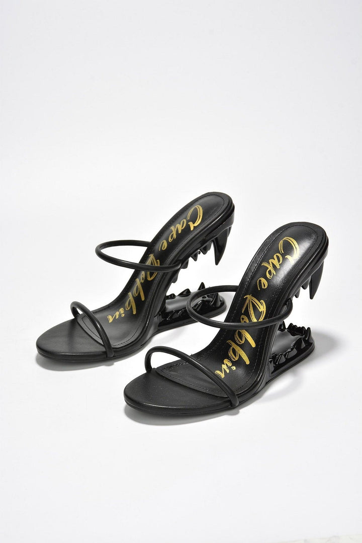 KADIN - BLACK - HEELS by CAPE ROBBIN metallic PU fierce cheetah teeth replica round toe This fierce cheetah-inspired replica is a must-have pair. Its metallic exterior and round toe gives it a unique and stylish look,while its replica cheetah teeth make it a stand-out accessory that will turn heads. Comes in black,pink,gold,green,and silver.