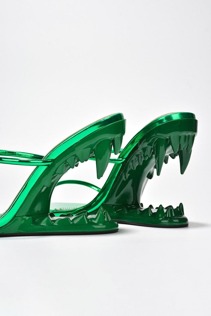 KADIN - GREEN - HEELS by CAPE ROBBIN open round toe lightly cushioned foot bed metallic PU rubber outsole 4 inch heels Roar fiercer in these stunning heels! Kadin's replica cheetah teeth deliver a ravishing bite full of glam and style. These breathtaking heels ooze with it-girl energy.