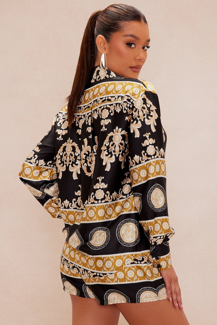 Available In Black/combo. | Satin Shirt | Collar | Long Sleeve | Button Up | Non Stretch | Disclaimer: Print Placement May Vary | Shell: 97% Polyester 3% Spandex | Imported