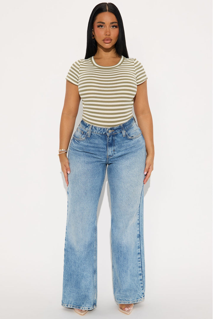 Kanoa Open Back Ribbed Bodysuit - Olive/combo