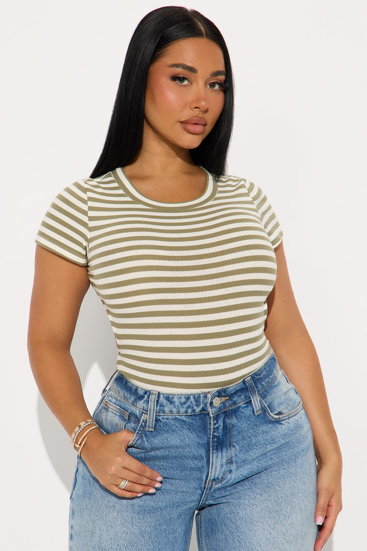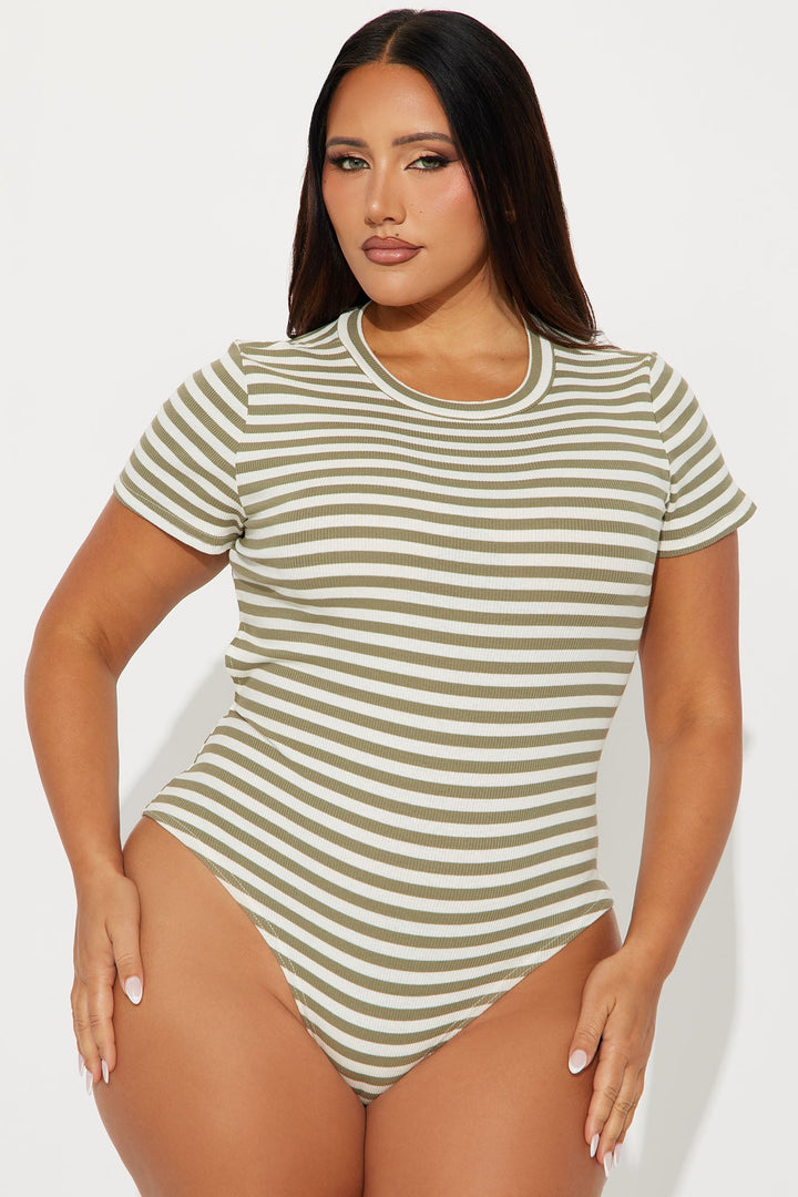 Kanoa Open Back Ribbed Bodysuit - Olive/combo