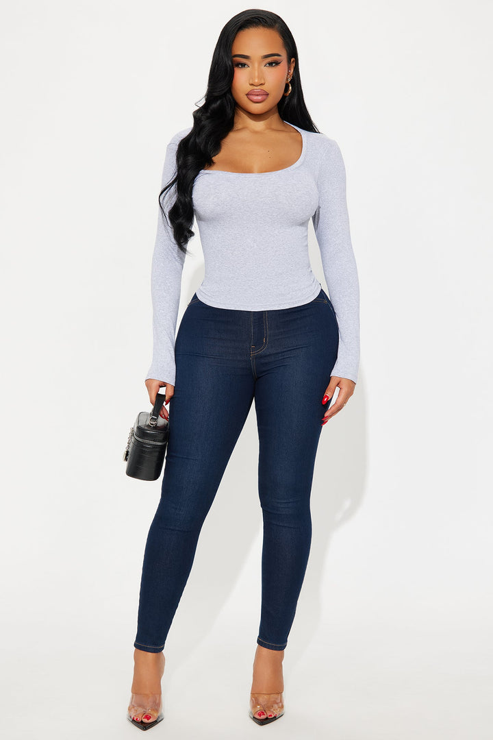 Karina Scoop Neck Long Sleeve Top - Heather Grey
