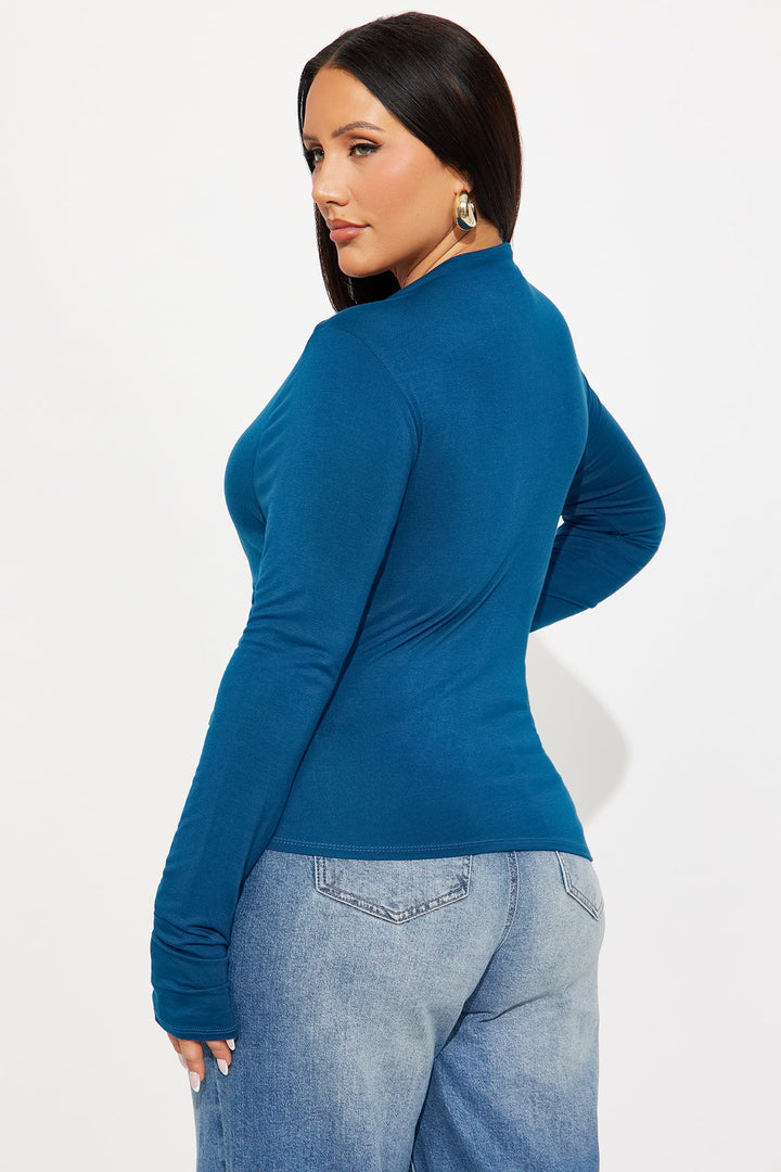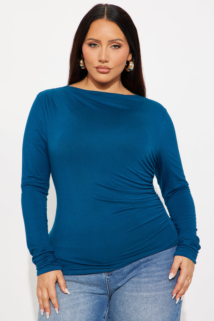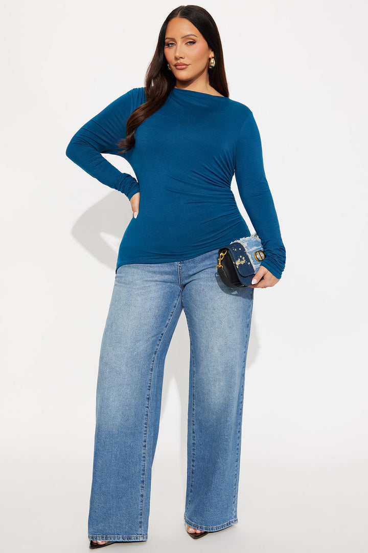 Kass Asymmetrical Long Sleeve Ruched Top - Blue