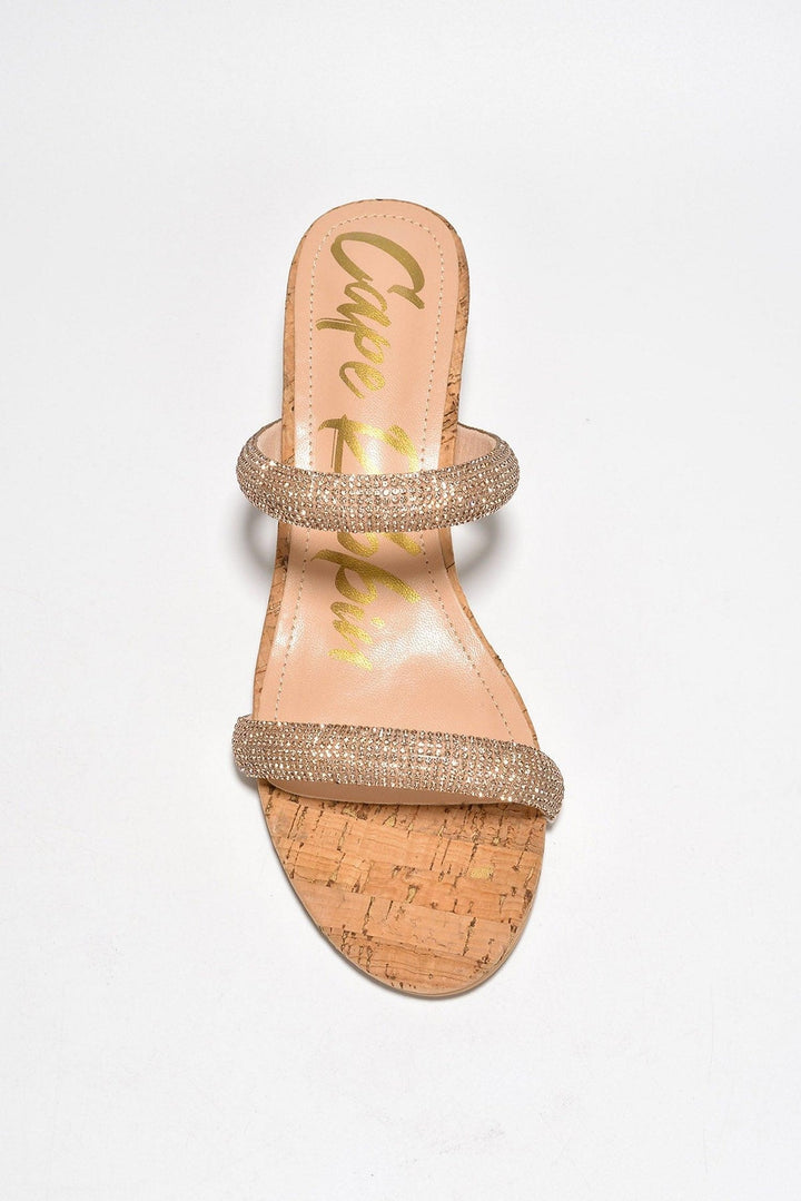 KATERINE - ROSE GOLD - HEELS by CAPE ROBBIN open round toe rubber outsole 2 inch block heel multiple vamp straps cork finish Katerine heels' brilliance will elevate casual spring outfits! Plus,the soft footbed makes it great for all-day wear. Features beautiful rhinestone accents for a stylish,shimmering look.