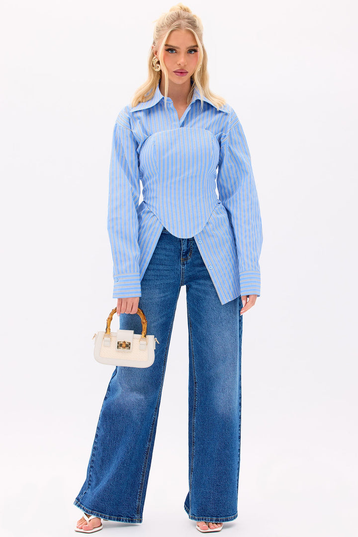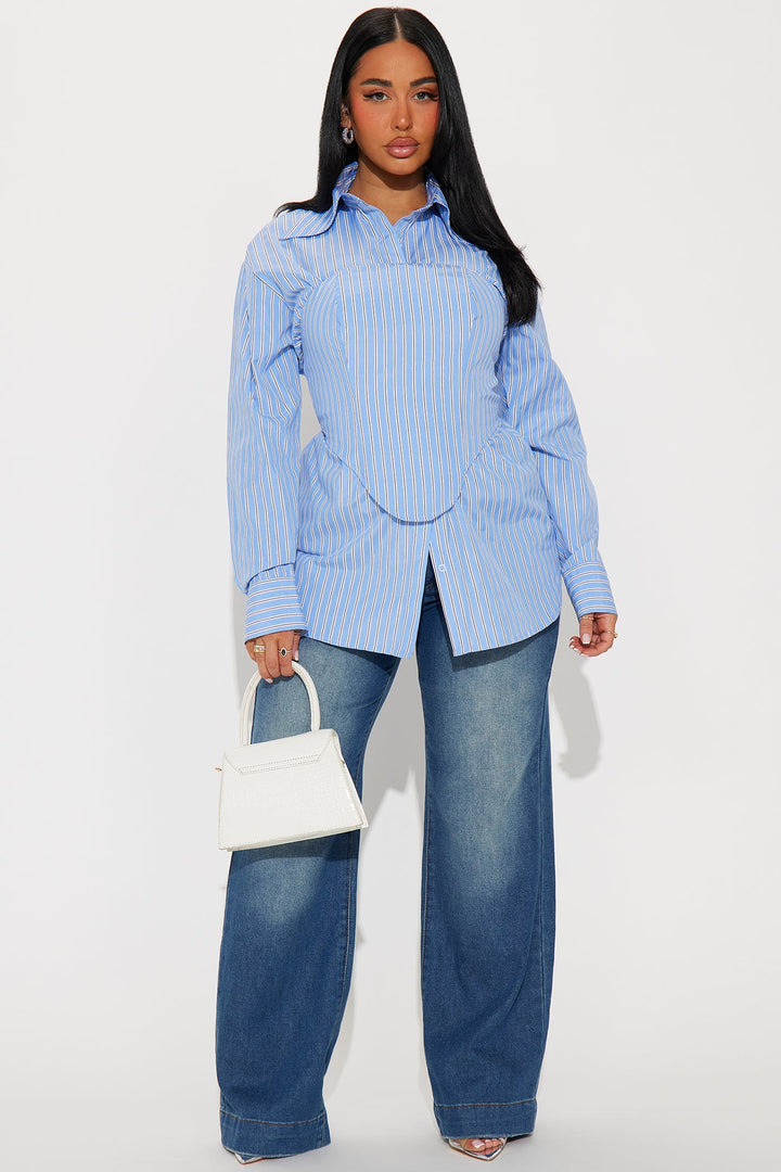 Available In Blue/combo. | Striped Poplin Shirt And Corset Top | Non Stretch | Button Front | Boning | Smocked Back | Lined | Shell: 100% Polyester | Imported
