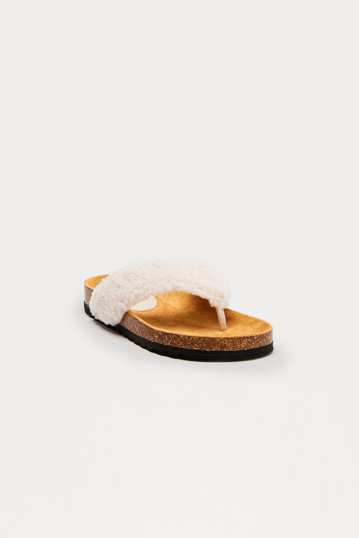 Available In Chocolate And Cream. | Flip Flops | Sherpa | Round Toe | Flat Heel | Imported