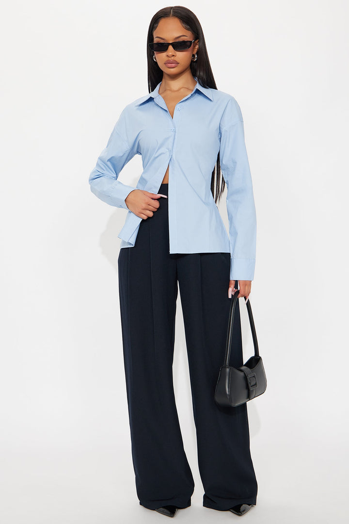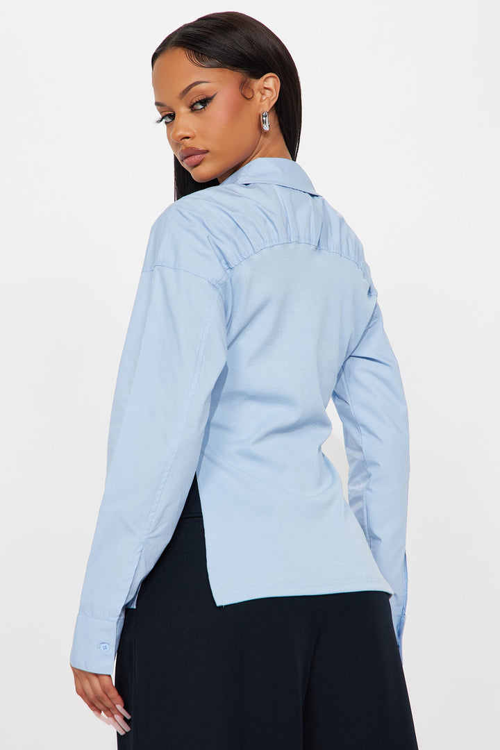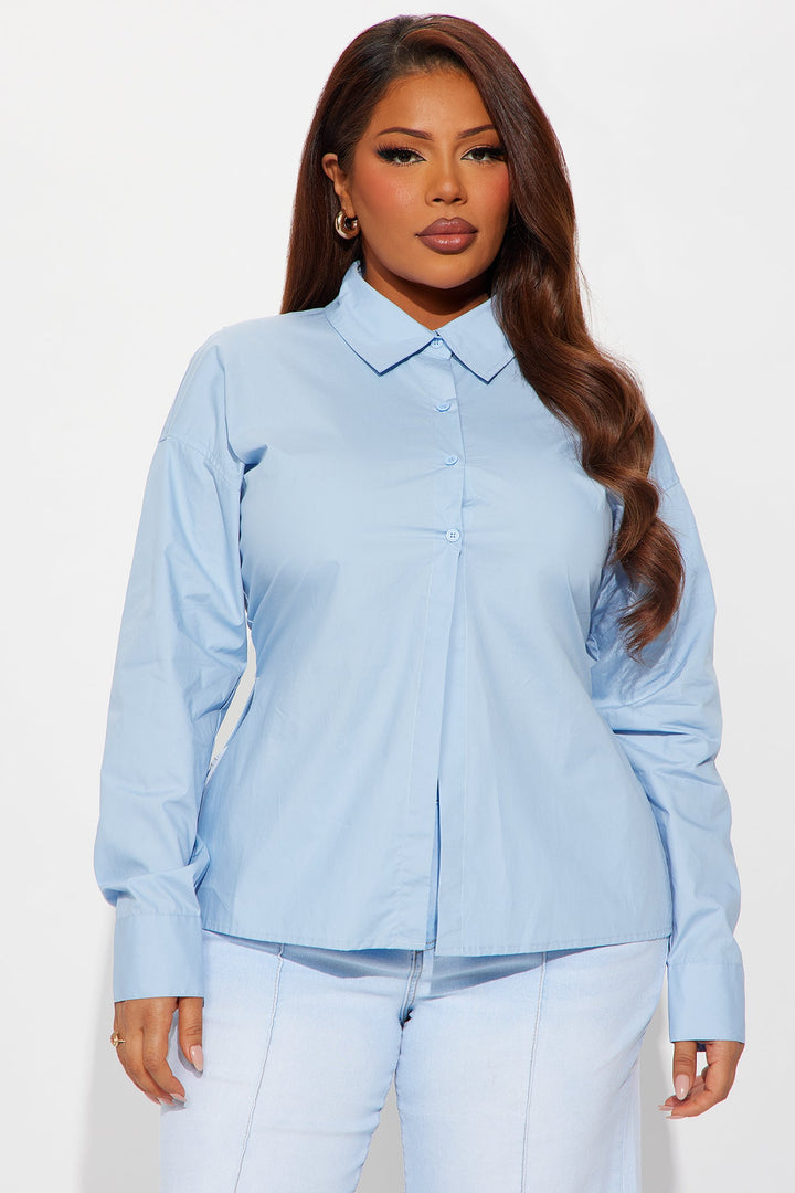 Available In Black, Blue And White. | Shirt | Long Sleeve | Button Down | Collar | Split Hem | Mixed Fabric | Ribbed Back | Partial Stretch | Self: 100%Cotton | Contrast: 90%Polyester 10%Spandex | Imported