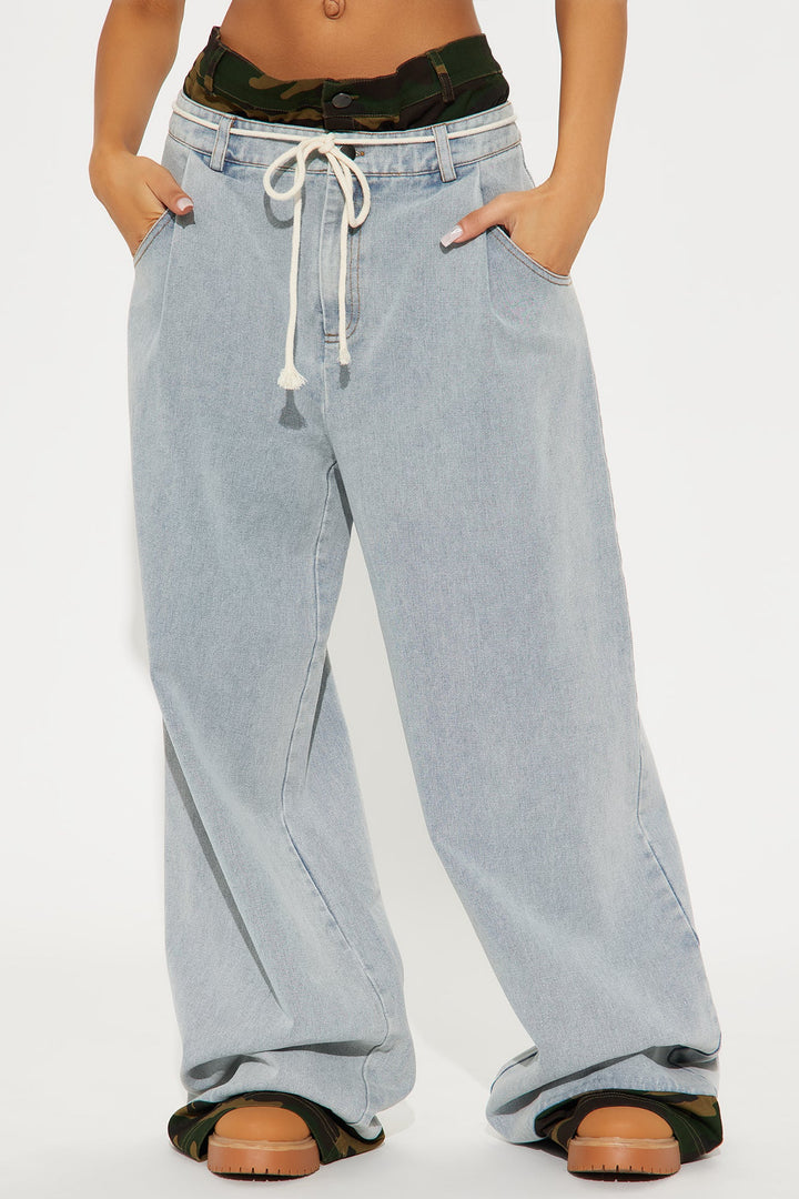 Keeping Secrets Baggy Denim Jeans - Light Wash