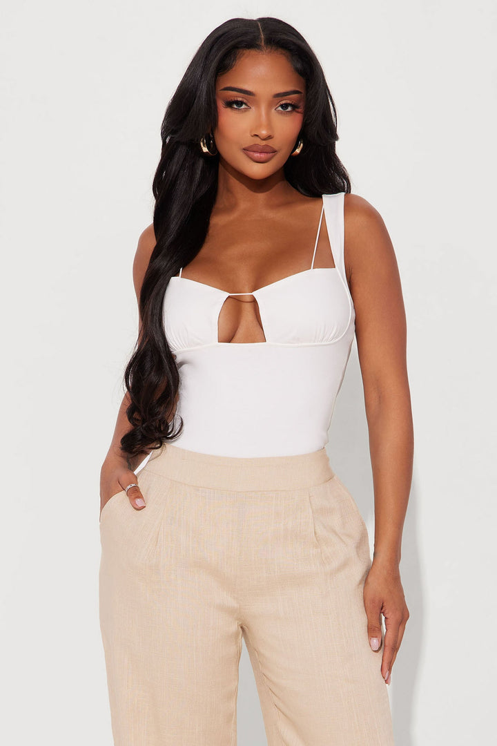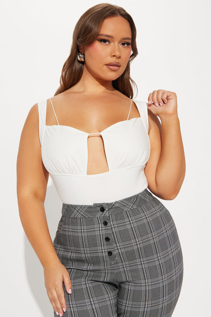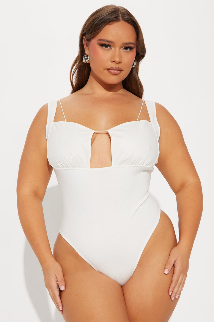 Available In Ivory And Navy. | Bodysuit | Stretch | Cut Out | Ruched Bust | Cheeky Bottom | Snap Closure | Final Sale | Self 67% Rayon 29% Nylon 4% Spandex | Contrast: 95% Cotton 5% Spandex | Imported