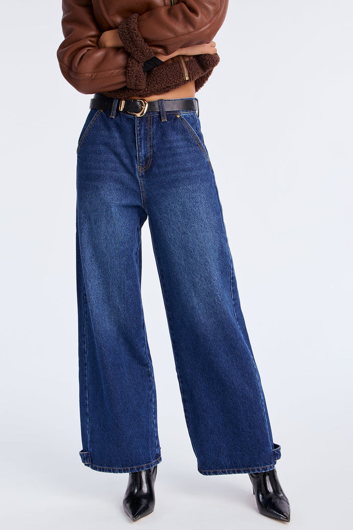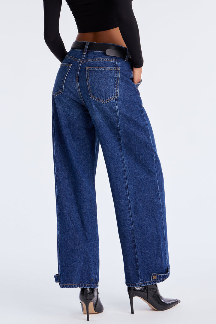 Available In Dark Wash. | Barrel Leg Jean | 4 Pocket | Adjustable Tab | 12" Rise | 29.5" Inseam | Disclaimer: Due To The Specialized Wash, Each Garment Is Unique. | 100% Cotton | Non Stretch | Imported