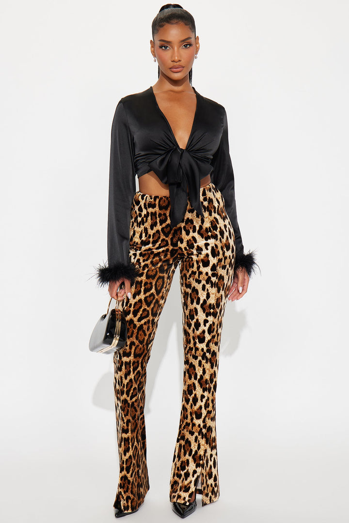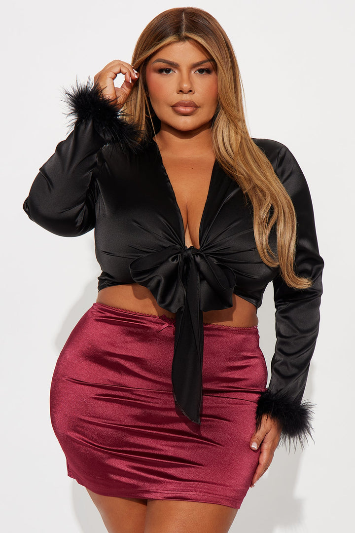Knot Your Babe Feather Satin Blouse - Black