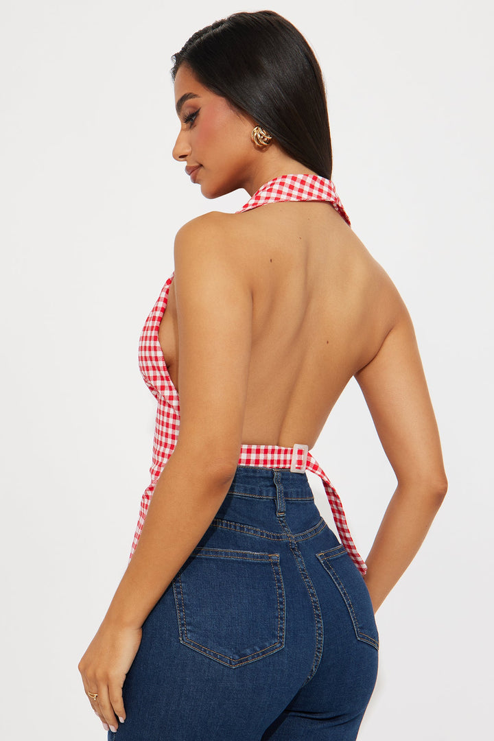 Available In Navy/combo And Red/White. | Gingham Halter Top | Stretch | Adjustable Slider | Double Lined | 100% Cotton | Imported