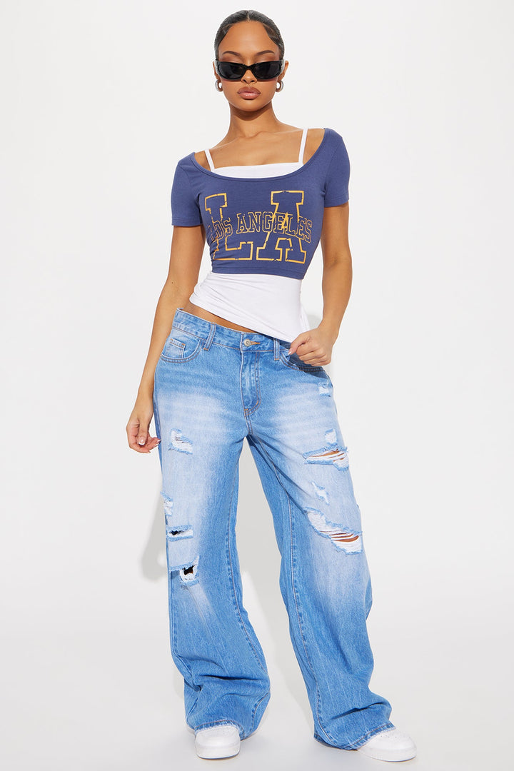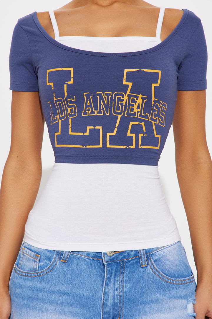 Available In Blue/combo. | Double Layered Top | Short Sleeve | Front Screen | Removable Top | Stretch | Due To The Printing Process A Difference In Saturation May Occur. Each Garment Is Unique. | 95% Cotton 5% Elastane | Imported