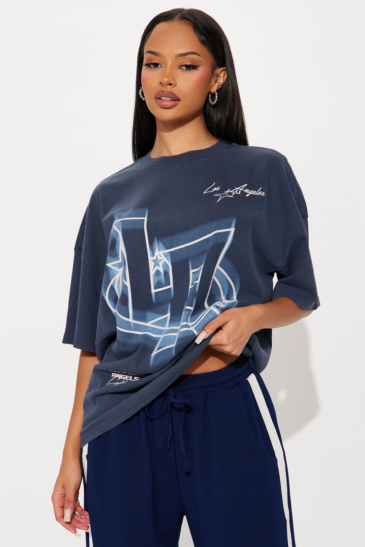 Available In Navy Wash. | T Shirt | Crew Neck | Short Sleeve | Front Screen | 100% Cotton | Imported