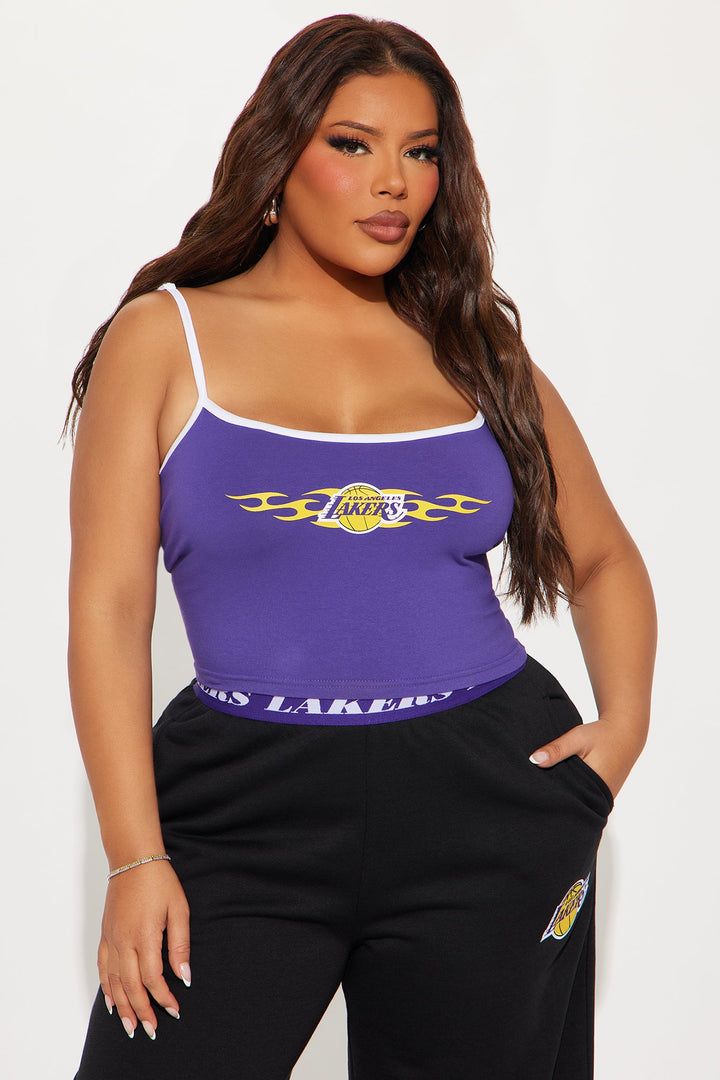 Available In Purple. | Tank Top | Spaghetti Straps | Lakers Graphic | Front Screen | Cropped | Stretch | Pair Back To "Lakers Halftime Wide Leg Pant" | Pair Back To "Lakers Halftime Zip Up Jacket" | Disclaimer: Due To The Printing Process A Difference In Saturation May Occur. Each Garment Is Unique. | 96% Cotton 4% Spandex | Imported