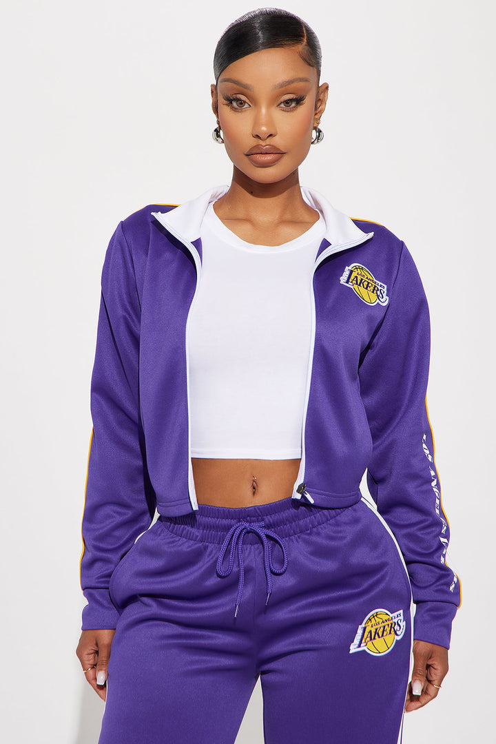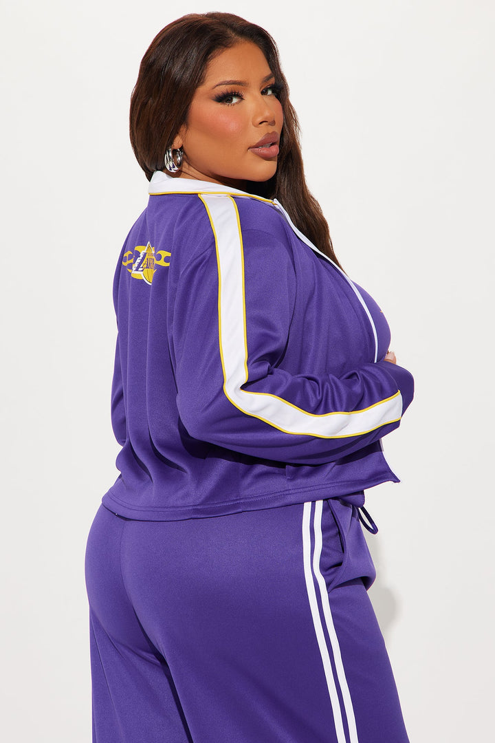 Available In Black And Purple. | Sweatshirt Zip Up | Mock Neck | Long Sleeve | Lakers Graphic | Front, Back, And Side Screen | Zipper Closure | Stretch | Pair Back To "Lakers Halftime Top" | Pair Back To "Lakers Halftime Wide Leg Pant" | Disclaimer: Due To The Printing Process A Difference In Saturation May Occur. Each Garment Is Unique. | 100% Polyester | Imported