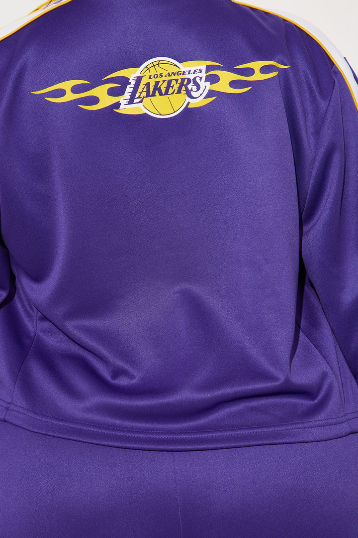 Available In Black And Purple. | Sweatshirt Zip Up | Mock Neck | Long Sleeve | Lakers Graphic | Front, Back, And Side Screen | Zipper Closure | Stretch | Pair Back To "Lakers Halftime Top" | Pair Back To "Lakers Halftime Wide Leg Pant" | Disclaimer: Due To The Printing Process A Difference In Saturation May Occur. Each Garment Is Unique. | 100% Polyester | Imported