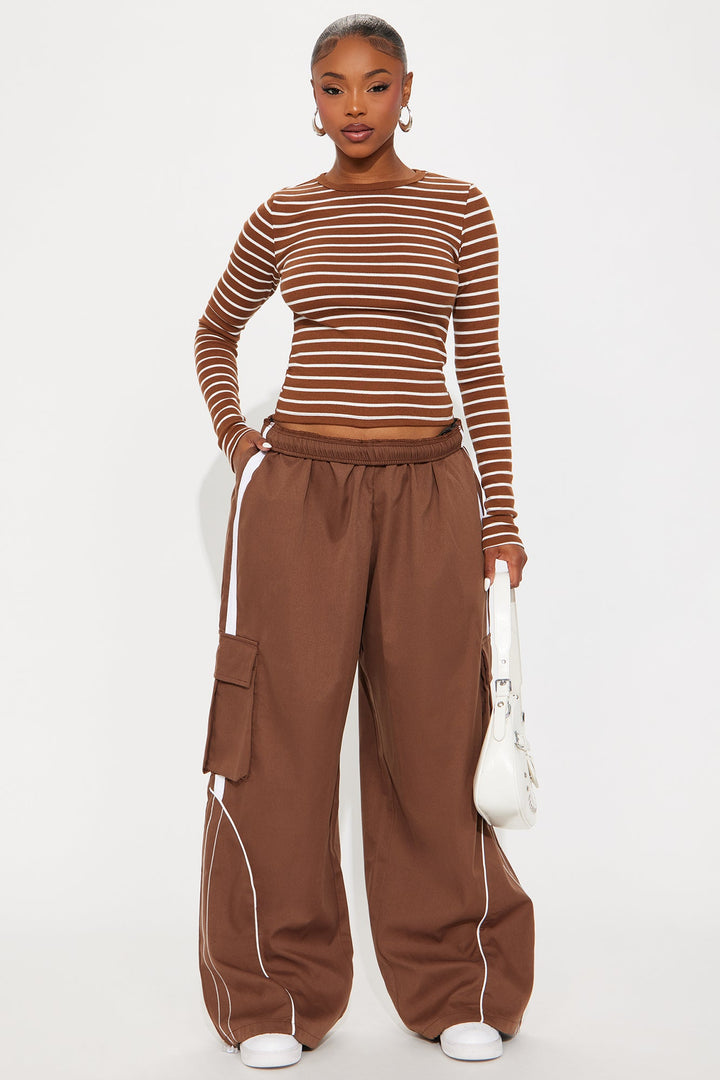 Lana Striped Crew Neck Long Sleeve Top - Chocolate/Combo