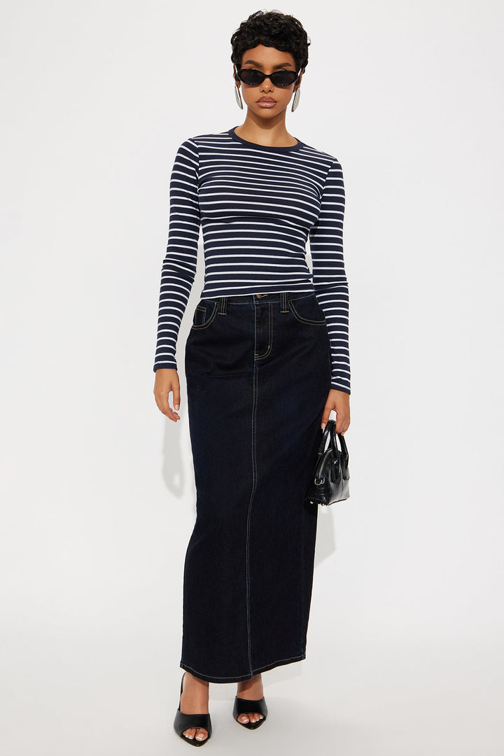 Lana Striped Crew Neck Long Sleeve Top - Navy/combo