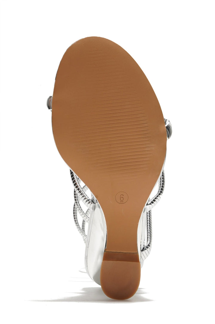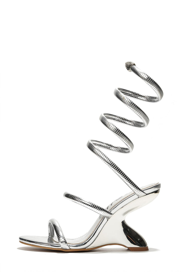 LARYSSA - SILVER - HEELS by CAPE ROBBIN Heel height: 4-inch Strappy wrap around PU Leather insole with memory foam Metallic finish Round toe Meet the Laryssa heels, featuring a striking spiral strap that wraps around your leg. These sandals are available in stunning gold, sleek black, vibrant blue, and shimmering silver. Perfect for the fearless fashionista who loves to stand out, the metallic finish adds a touch of luxury and sophistication, ensuring all eyes are on you. Whether you're heading to a party, a special event, or a night out, these sandals will ensure you make a bold fashion statement.