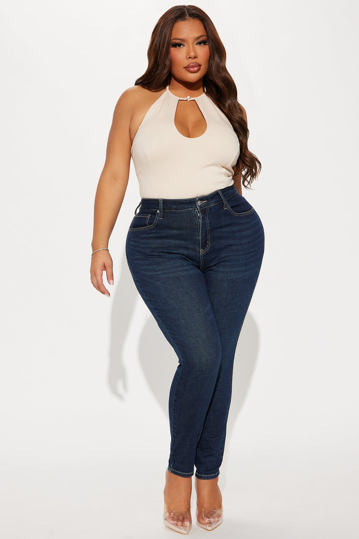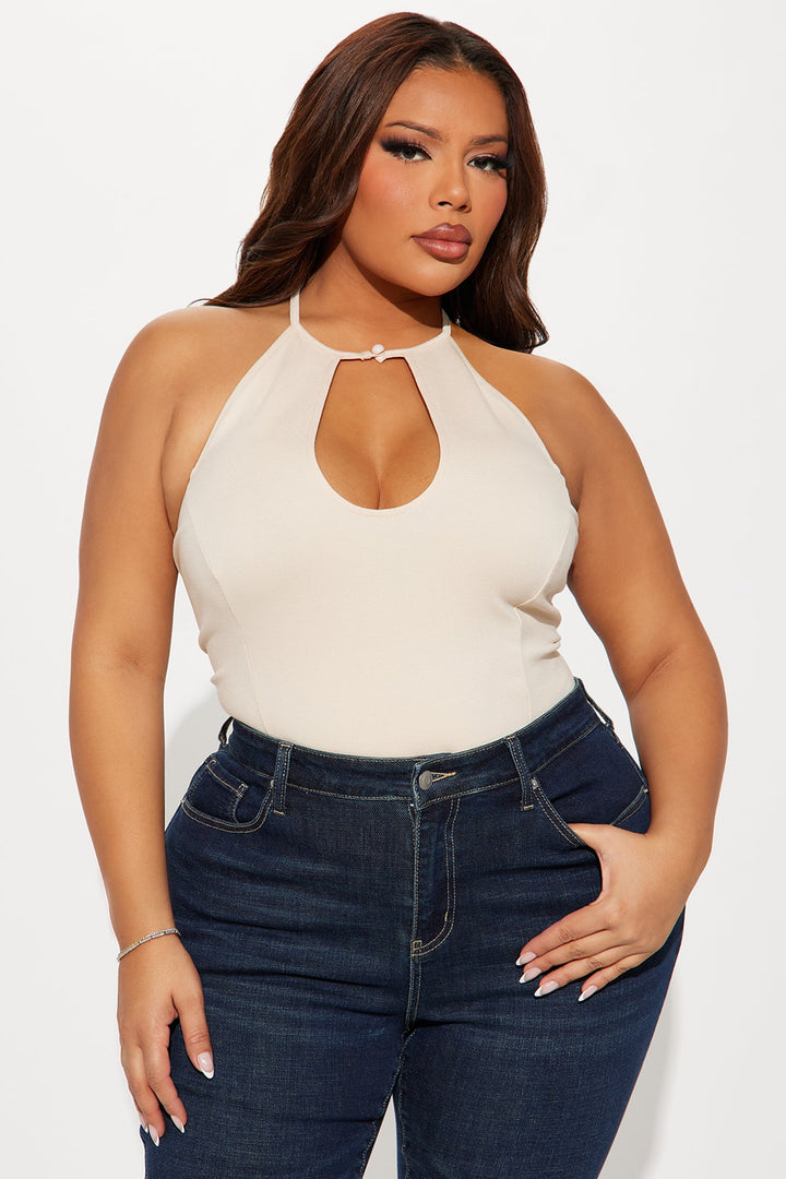 Available In Cream. | Halter Top | Front Neck Closure | Keyhole Cutout | Cropped | Stretch | 68% Rayon 28% Nylon 4% Spandex | Imported