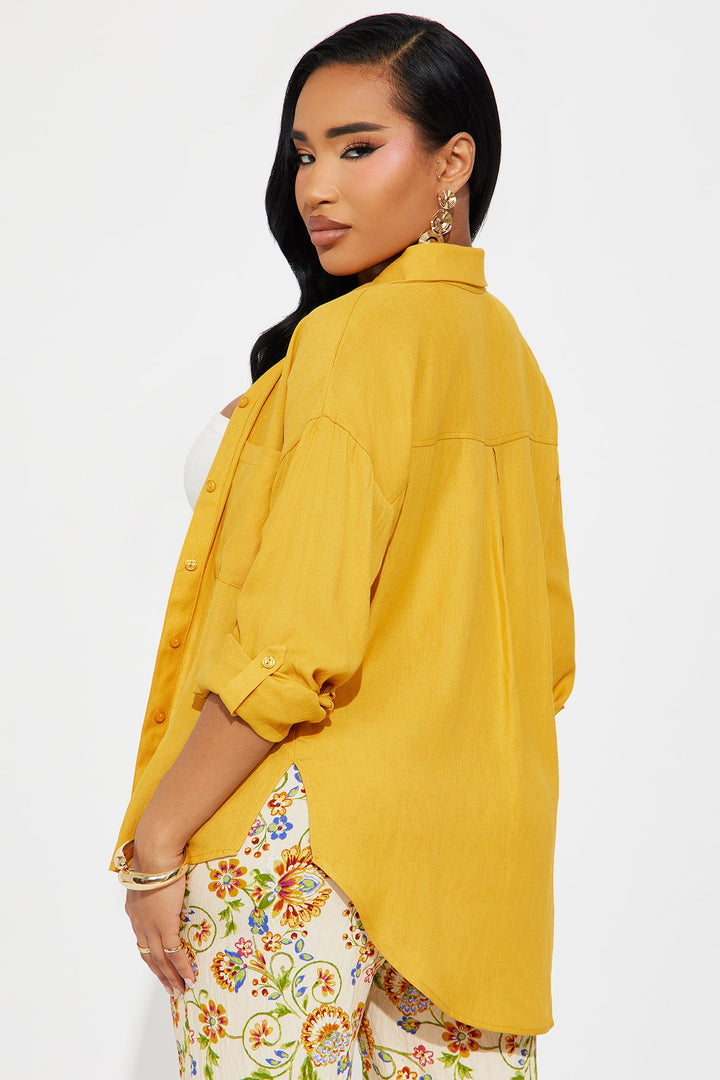 Available In Black, Mustard And Red. | Linen Shirt | Button Up | Sleeve Button Detail | Front Pocket | Non Stretch | 45% Polyester 45% Rayon 10% Linen | Imported