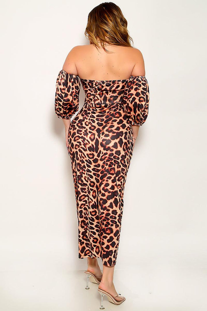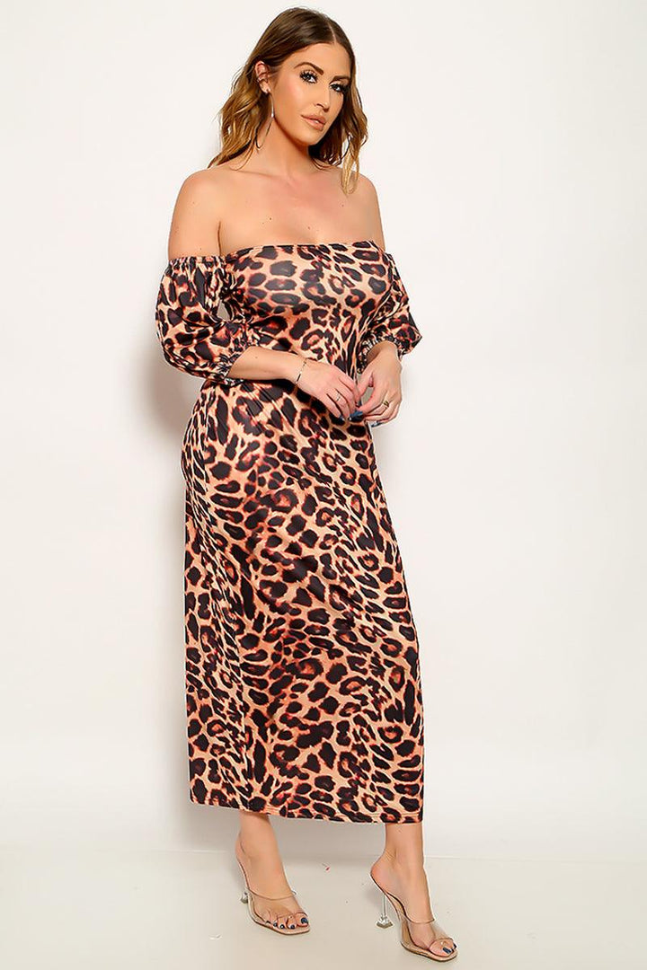 Get ready to pounce and turn heads in this fierce and wild Leopard Print Puff Sleeves Off The Shoulders Full Length Midi Sexy Dress. With a playful and sultry off-the-shoulder design, puff sleeves, and a curve-hugging midi length, this dress is sure to show off your fierce fashion sense. Don't be afraid to embrace your inner leopard with this daring and stylish dress!