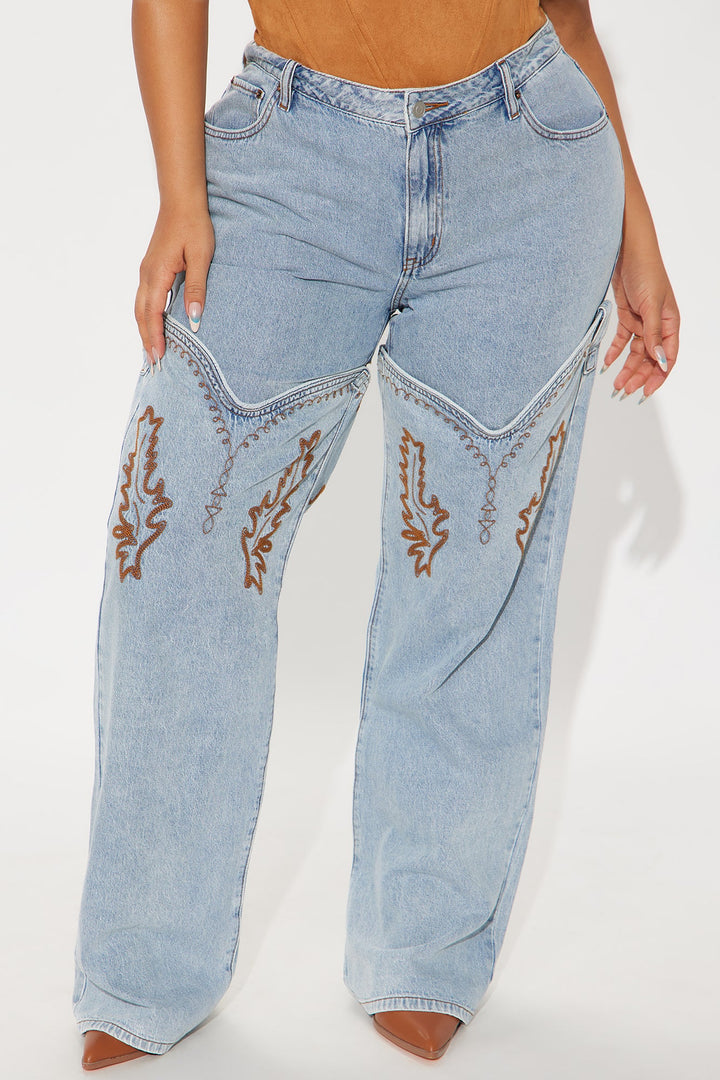 Let's Ride Western Boot Convertible Straight Leg Jeans - Light Wash