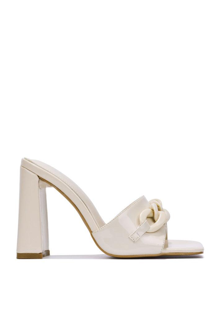 LETITA - OFF WHITE - HEELS by CAPE ROBBIN square toe block heels chain trim padded insole Letita features a sleek and stylish silhouette that's perfect for any occasion. The heels give a modern feel,while the chain trim offers a dash of style. This shoe is sure to be both fashionable and comfortable,making it a great addition to any collection. Comes in brown,blue,and mauve.