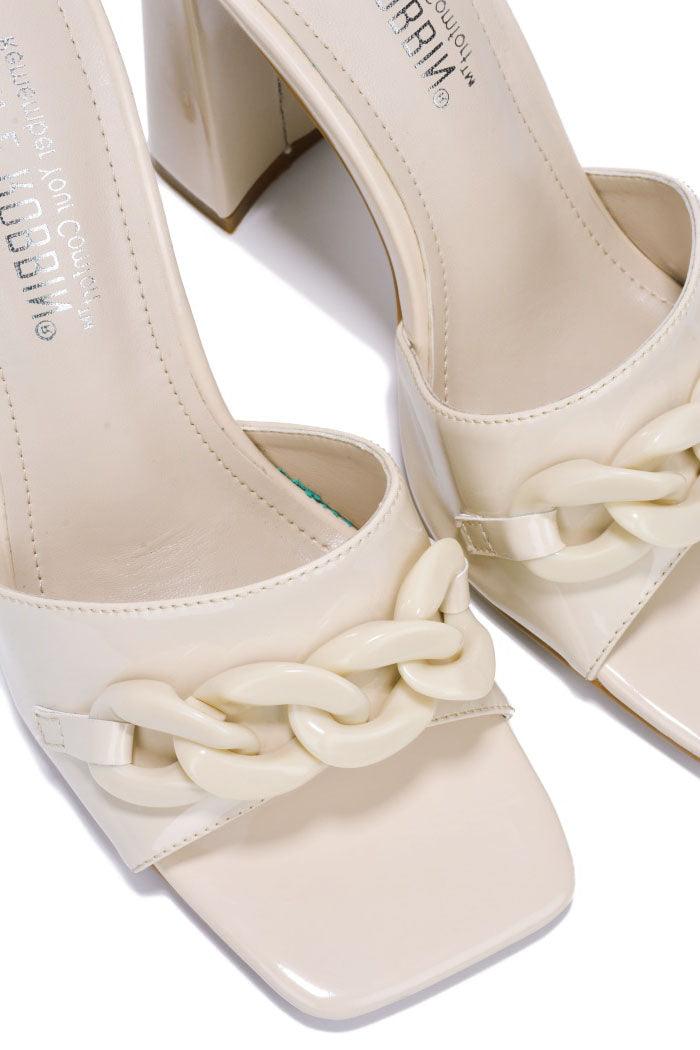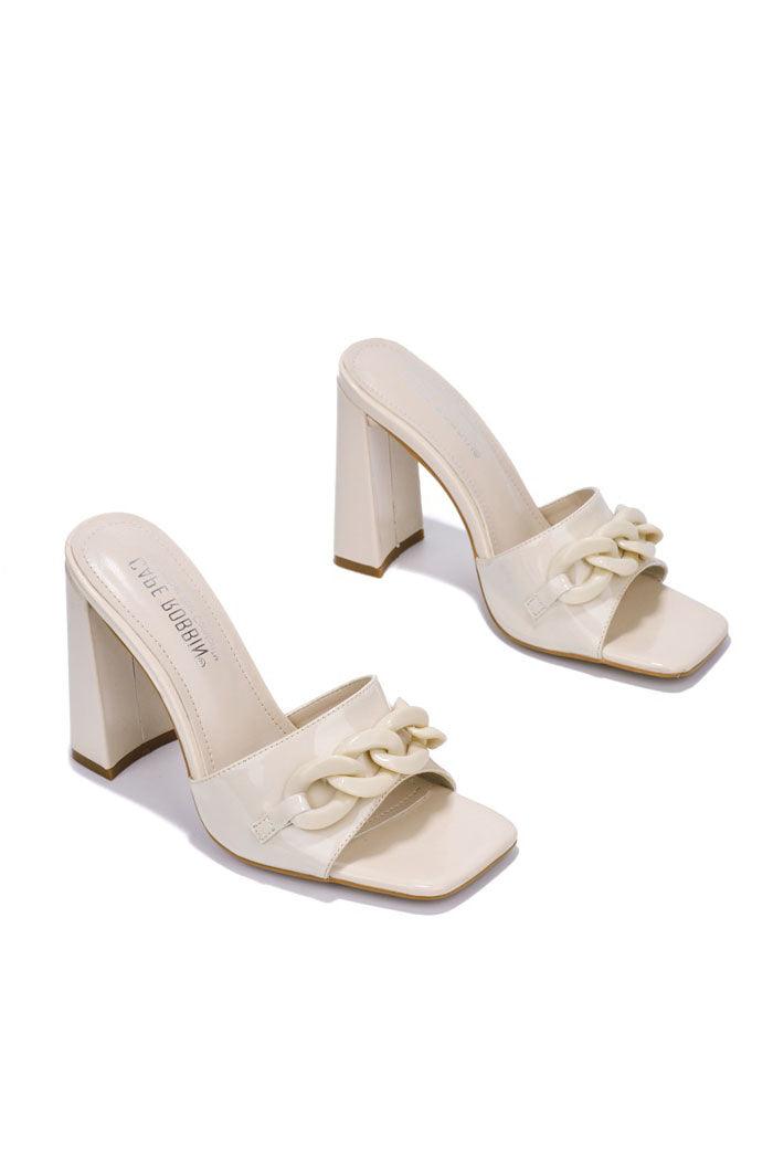 LETITA - OFF WHITE - HEELS by CAPE ROBBIN square toe block heels chain trim padded insole Letita features a sleek and stylish silhouette that's perfect for any occasion. The heels give a modern feel,while the chain trim offers a dash of style. This shoe is sure to be both fashionable and comfortable,making it a great addition to any collection. Comes in brown,blue,and mauve.