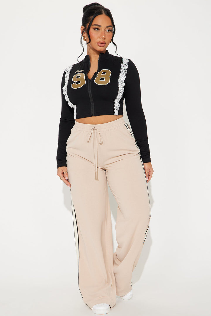 Available In Black. | Mock Neck | Long Sleeve | Front Screen | Lace | Zipper Detail | Stretch | Disclaimer: Due To The Printing Process A Difference In Saturation May Occur. Each Garment Is Unique. | 94% Cotton 6% Spandex | Imported