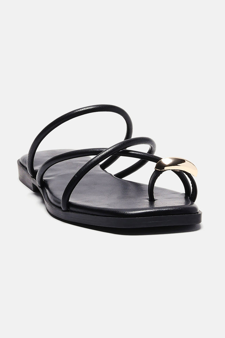 Available In Black. | Flat Sandals | Toe Strap Detail | Square Toe | Flat Heel | Imported