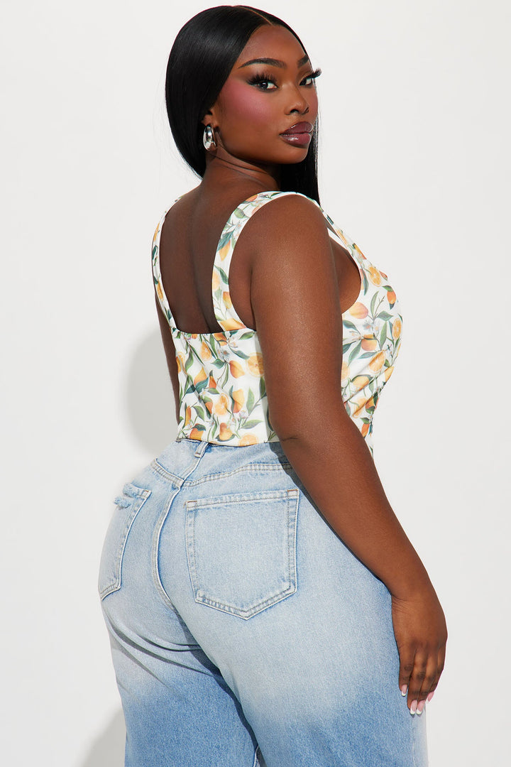 Available In Ivory/combo. | Corset Top | Square Neckline | Sleeveless | Hook & Eye Detail | Mesh | Stretch | Disclaimer: Print Placement Will Vary | Shell 85% Polyester 15% Spandex | Lining 100% Polyester | Imported
