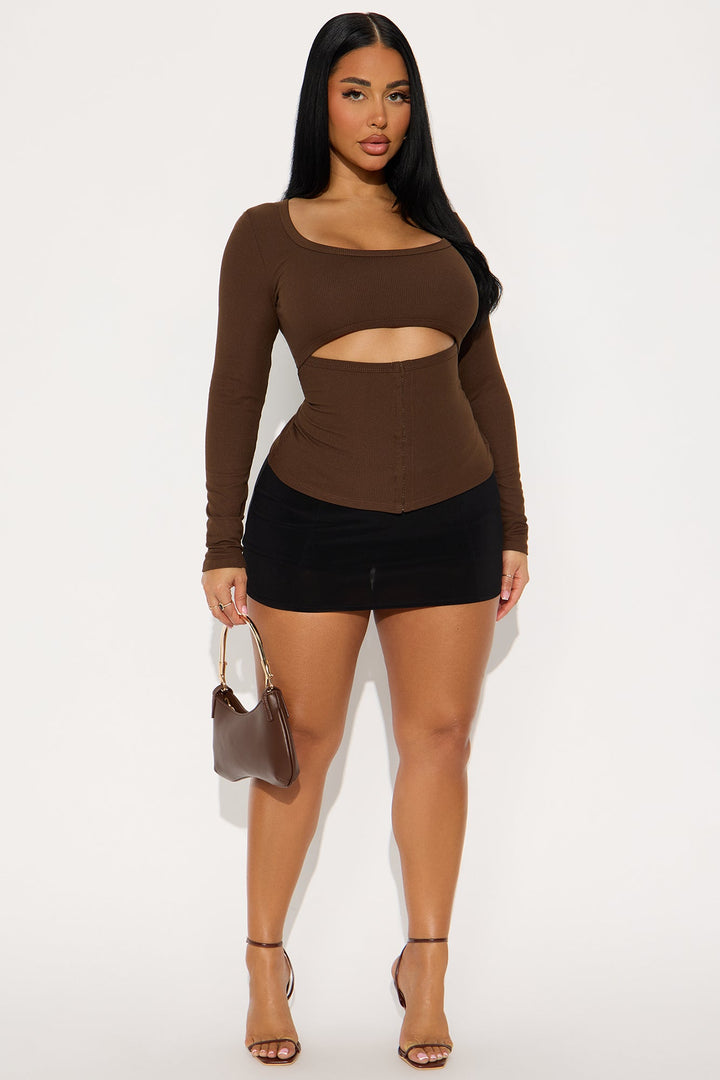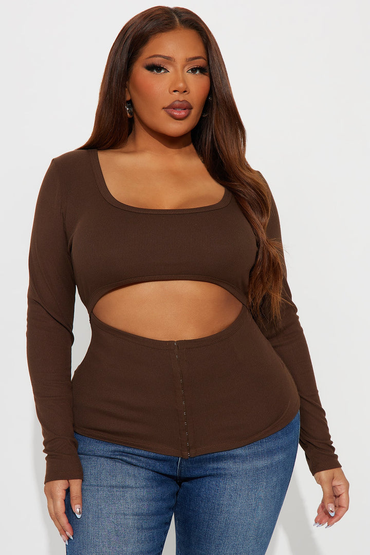 Liora Cut Out Ribbed Long Sleeve Top - Brown
